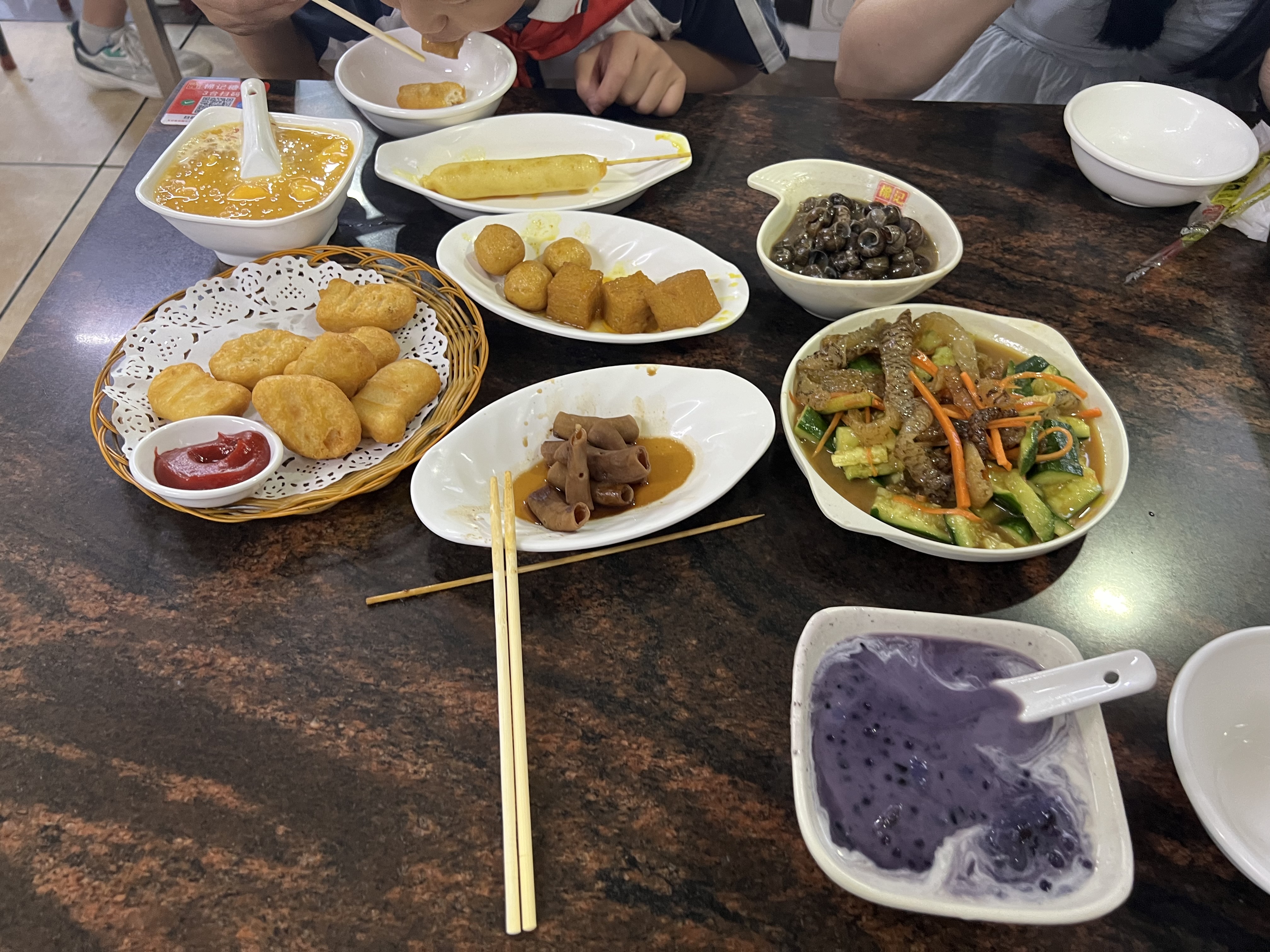 Mixed Asian Dishes | ["fried dough","stir-fried vegetables","sauce","dessert"] | ["fried dough:200g","stir-fried vegetables:150g","dessert:100g"] | |