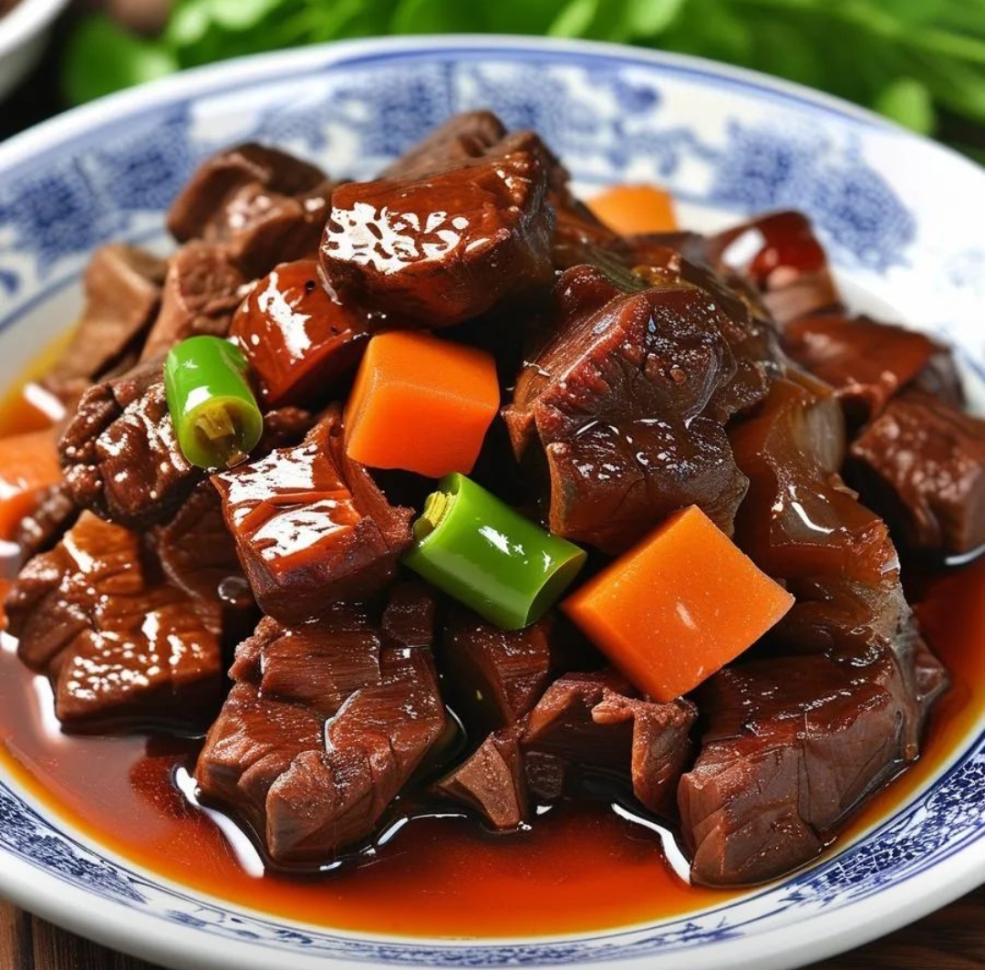 Braised Beef with Vegetables | ["beef","carrots","green peppers","soy sauce"] | ["beef:250g","carrots:50g","green peppers:30g"] | |