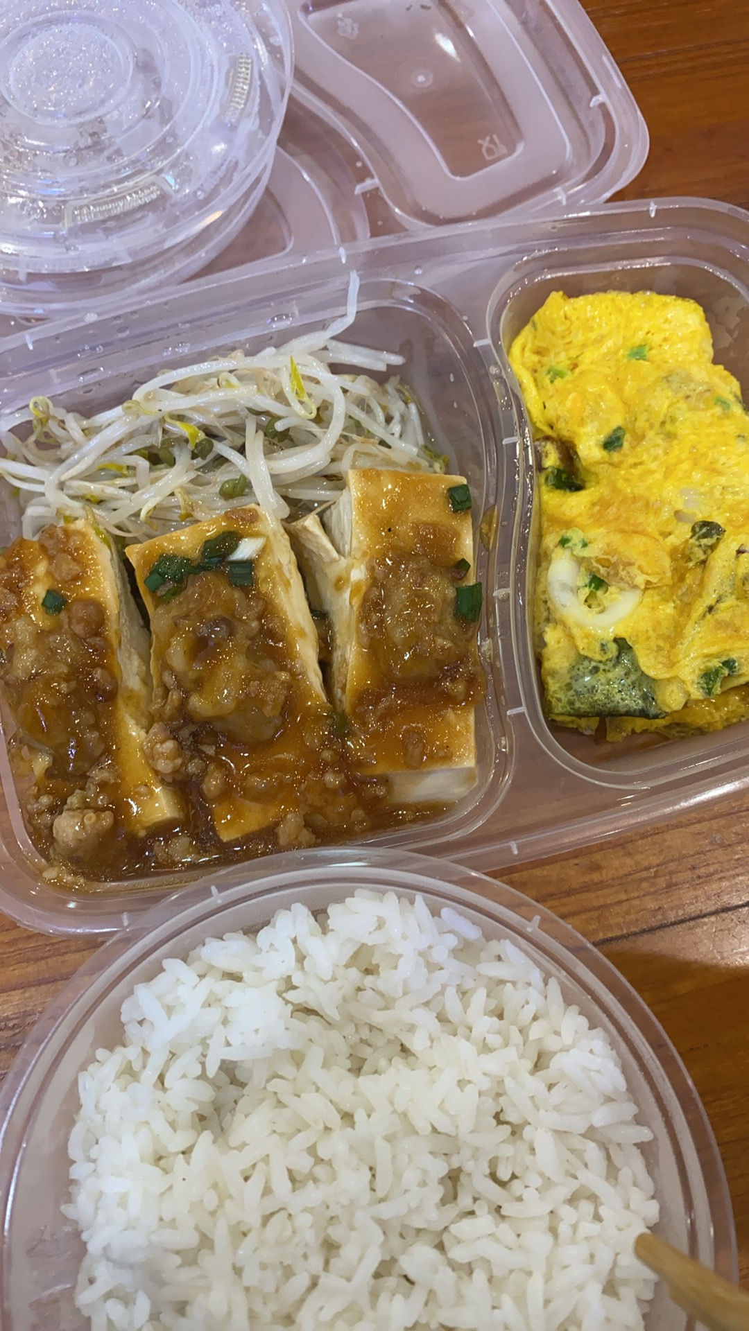 Chicken Rice with Egg | ["rice","chicken","egg","bean sprouts","sauce"] | ["rice:200g","chicken:150g","egg:100g"] | |
