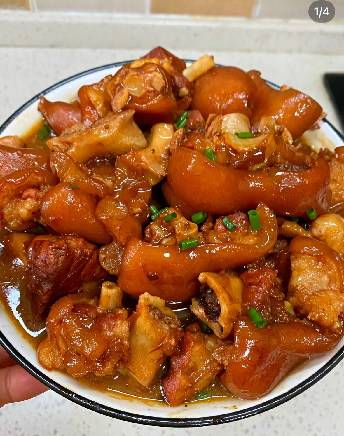 Braised Pork Trotters | ["pork trotters","beans","sauce","green onions"] | ["pork trotters:300g","beans:100g","sauce:50g"] | |