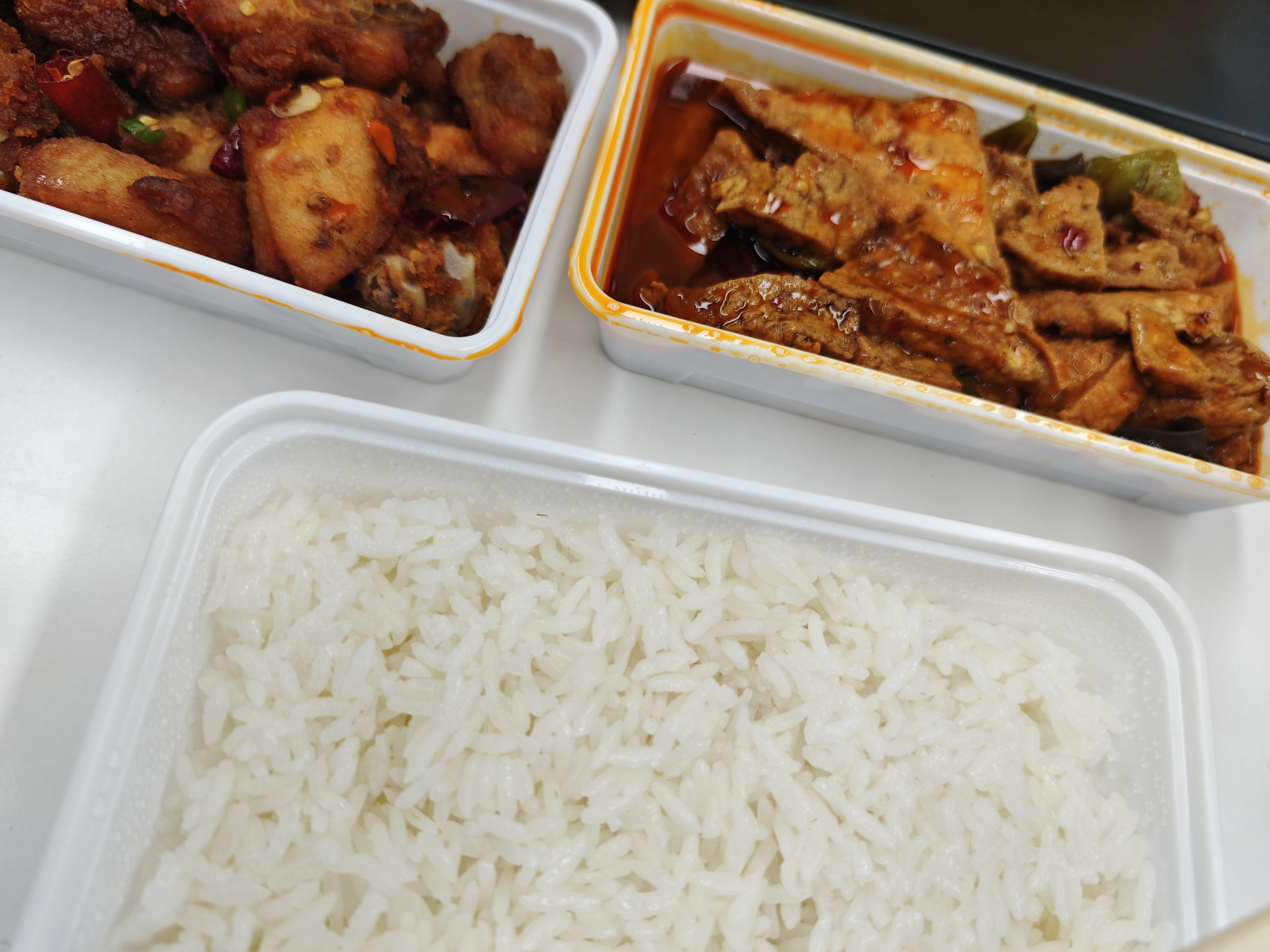 Mixed Asian Meal | ["rice","fried chicken","stir-fried vegetables"] | ["rice:200g","chicken:150g","vegetables:100g"] | |