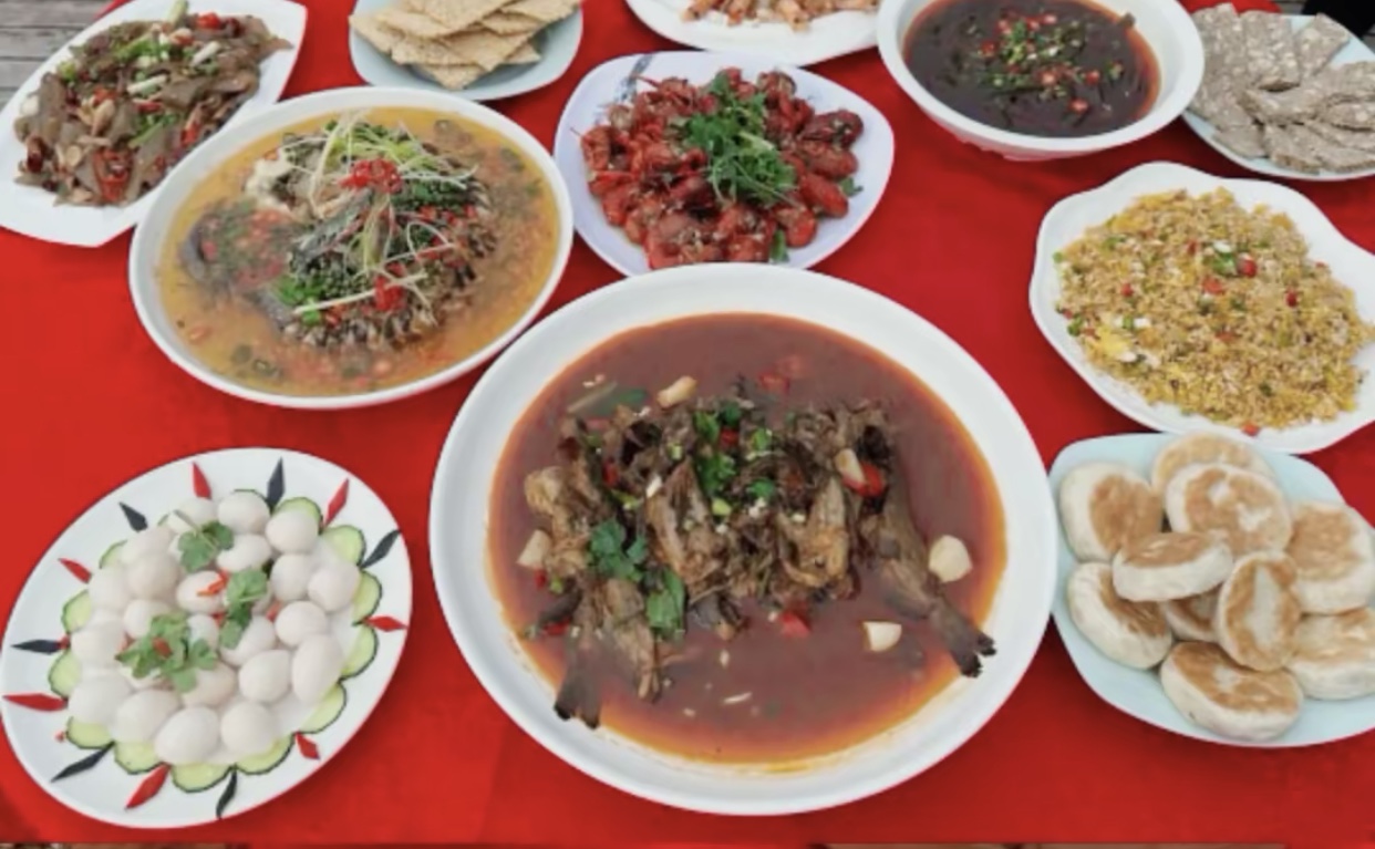 Chinese banquet dishes | ["chicken","beef","vegetables","rice","sauce"] | ["meat:500g","vegetables:300g","rice:200g"] | |