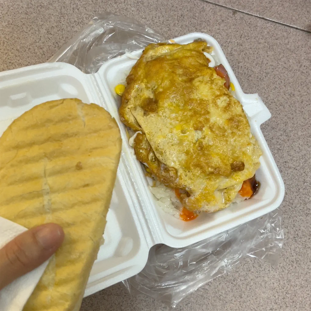 Egg Rice with Bread | ["rice","egg","bread","vegetables"] | ["rice:300g","egg:100g","bread:100g"] | |