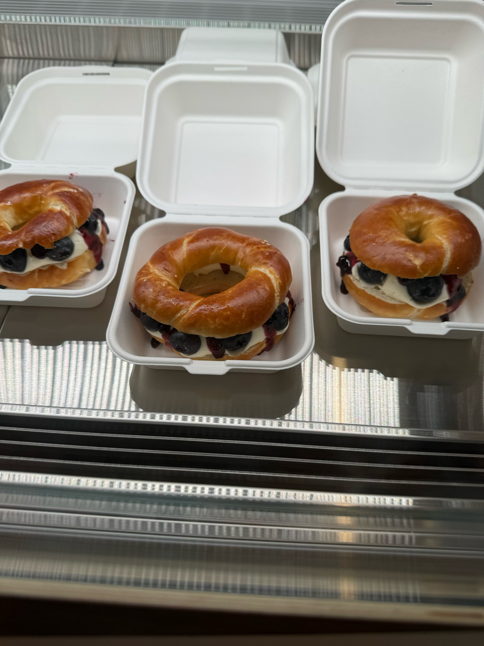 Croissant Sandwich | ["croissant","blueberries","cream"] | ["croissant:150g","blueberries:50g","cream:30g"] | |