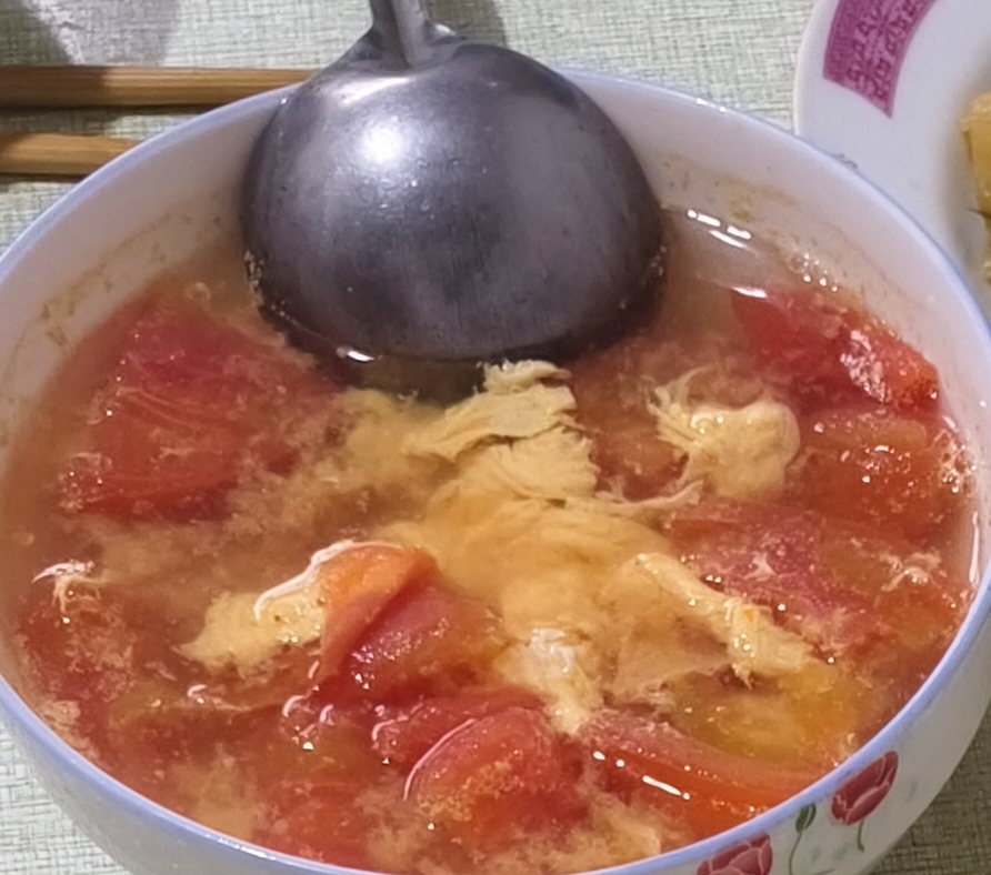 Tomato Egg Soup | ["tomatoes","eggs","water","seasoning"] | ["tomatoes:200g","eggs:100g"] | |