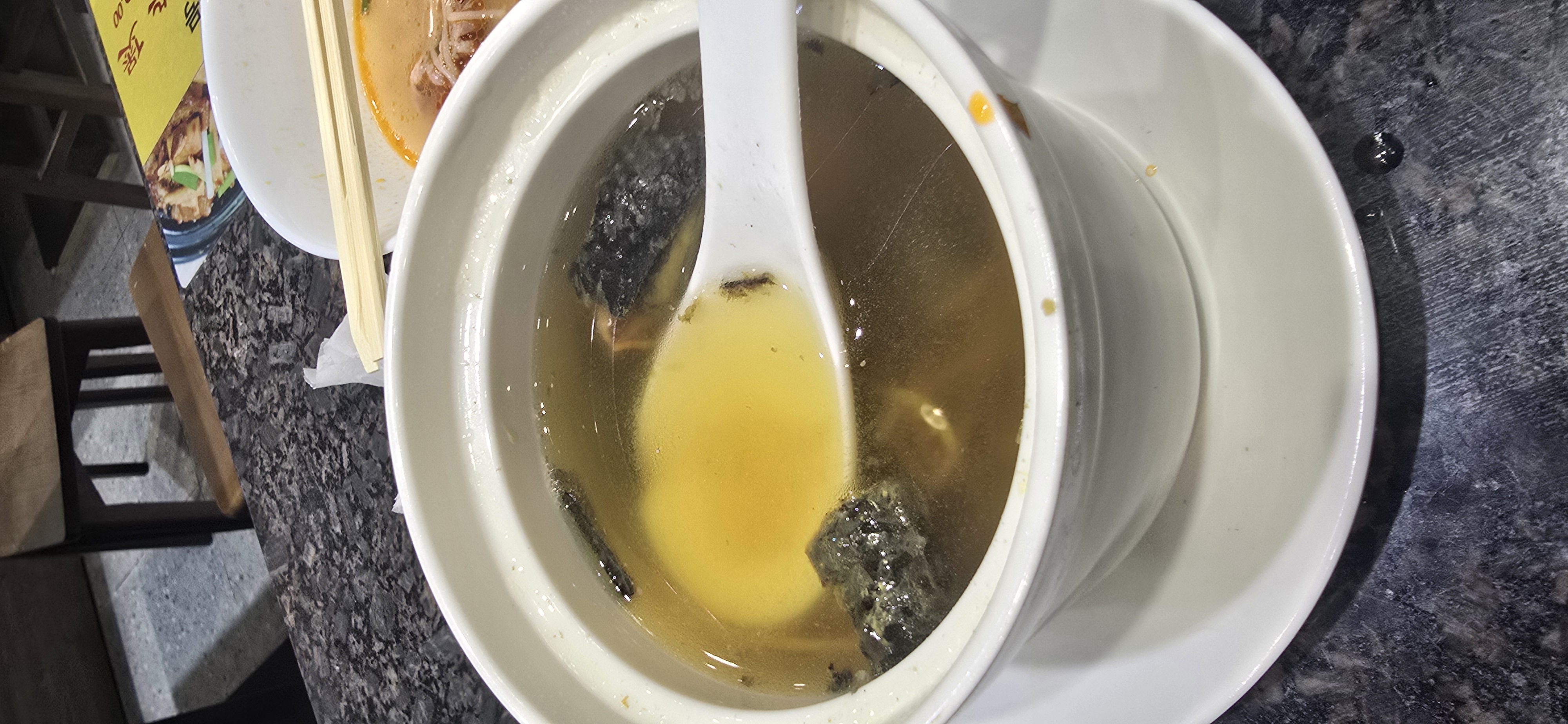 Egg Soup | ["broth","egg","seaweed"] | ["broth:300g","egg:50g","seaweed:10g"] | |