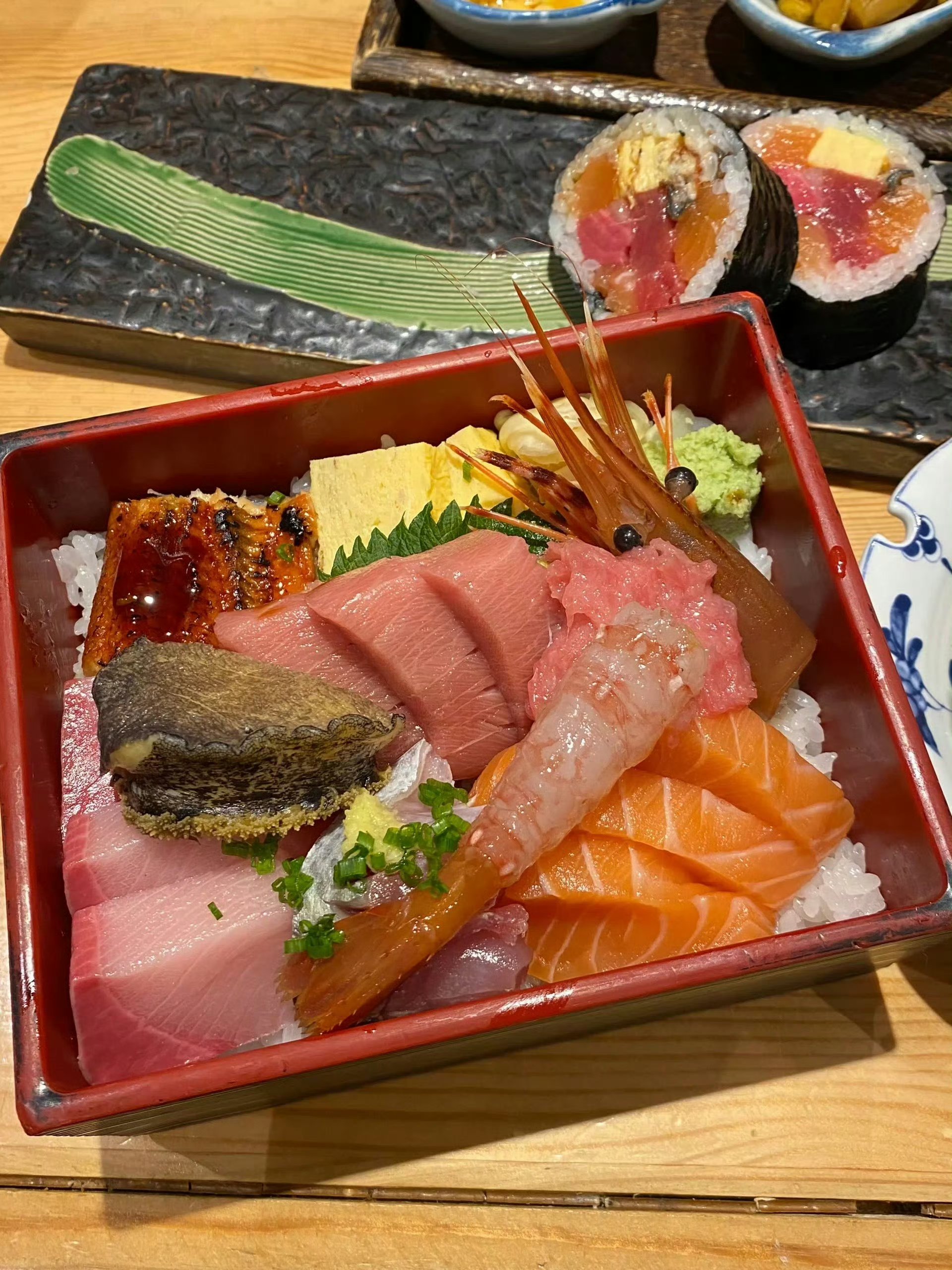 Sushi and Sashimi Platter | ["sushi rice","salmon","tuna","shrimp","eel","wasabi","nori"] | ["sushi rice:200g","salmon:100g","tuna:100g","shrimp:50g","eel:50g"] | |