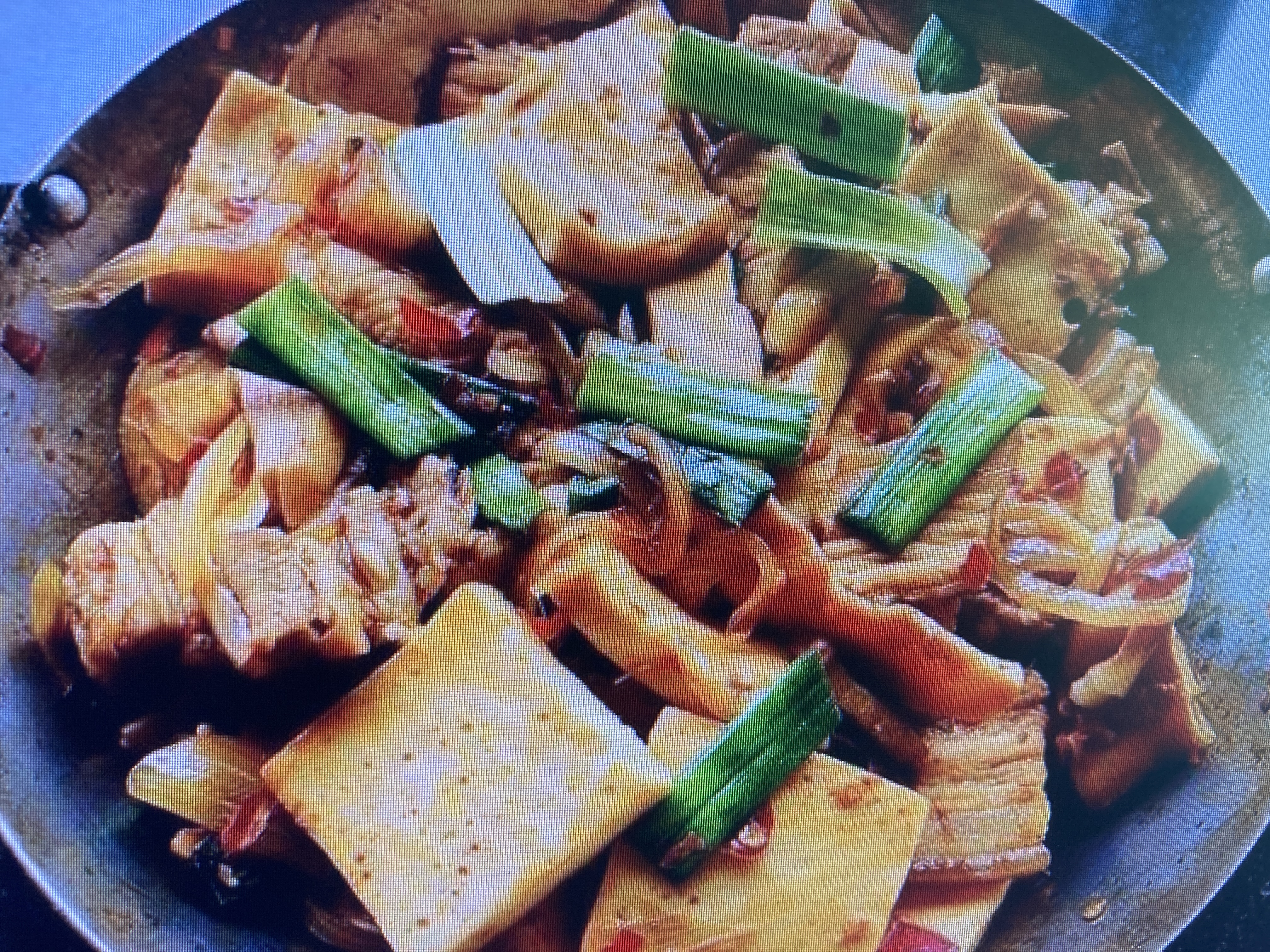 Stir-fried Tofu and Meat | ["meat","tofu","green onions","bell peppers","onions"] | ["meat:200g","tofu:150g","vegetables:100g"] | |