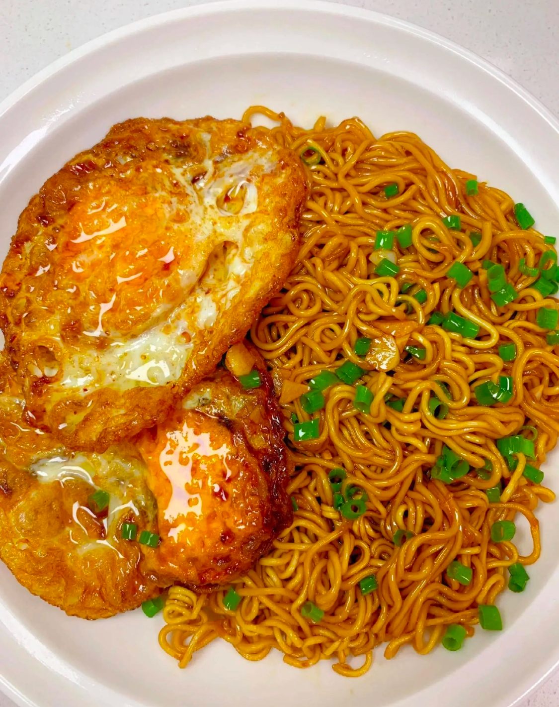 Fried Eggs with Noodles | ["fried eggs","noodles","green onions"] | ["eggs:200g","noodles:300g"] | |