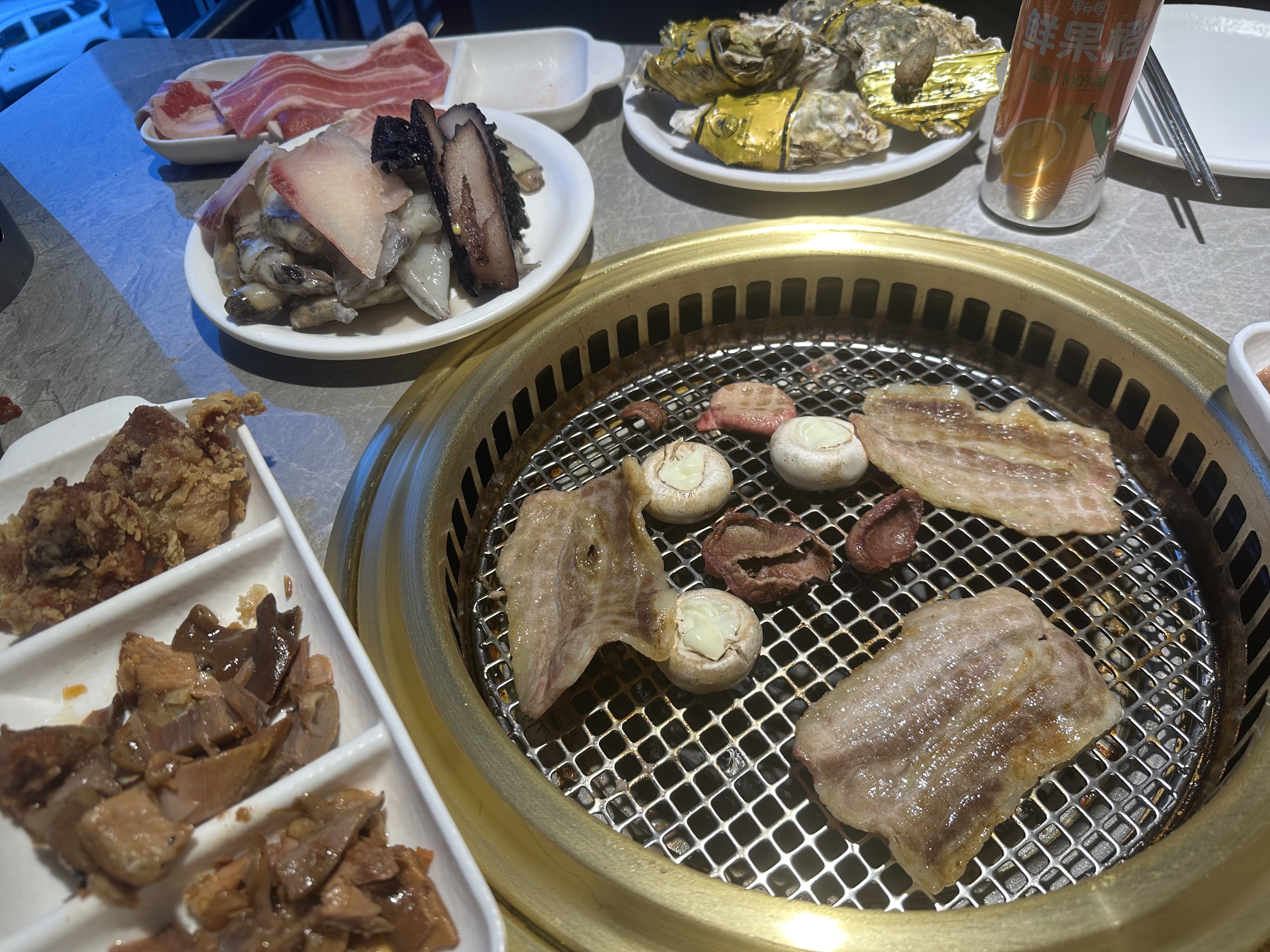 Grilled Mixed Platter | ["beef","pork","seafood","mushrooms"] | ["beef:200g","pork:150g","seafood:100g","mushrooms:50g"] | |
