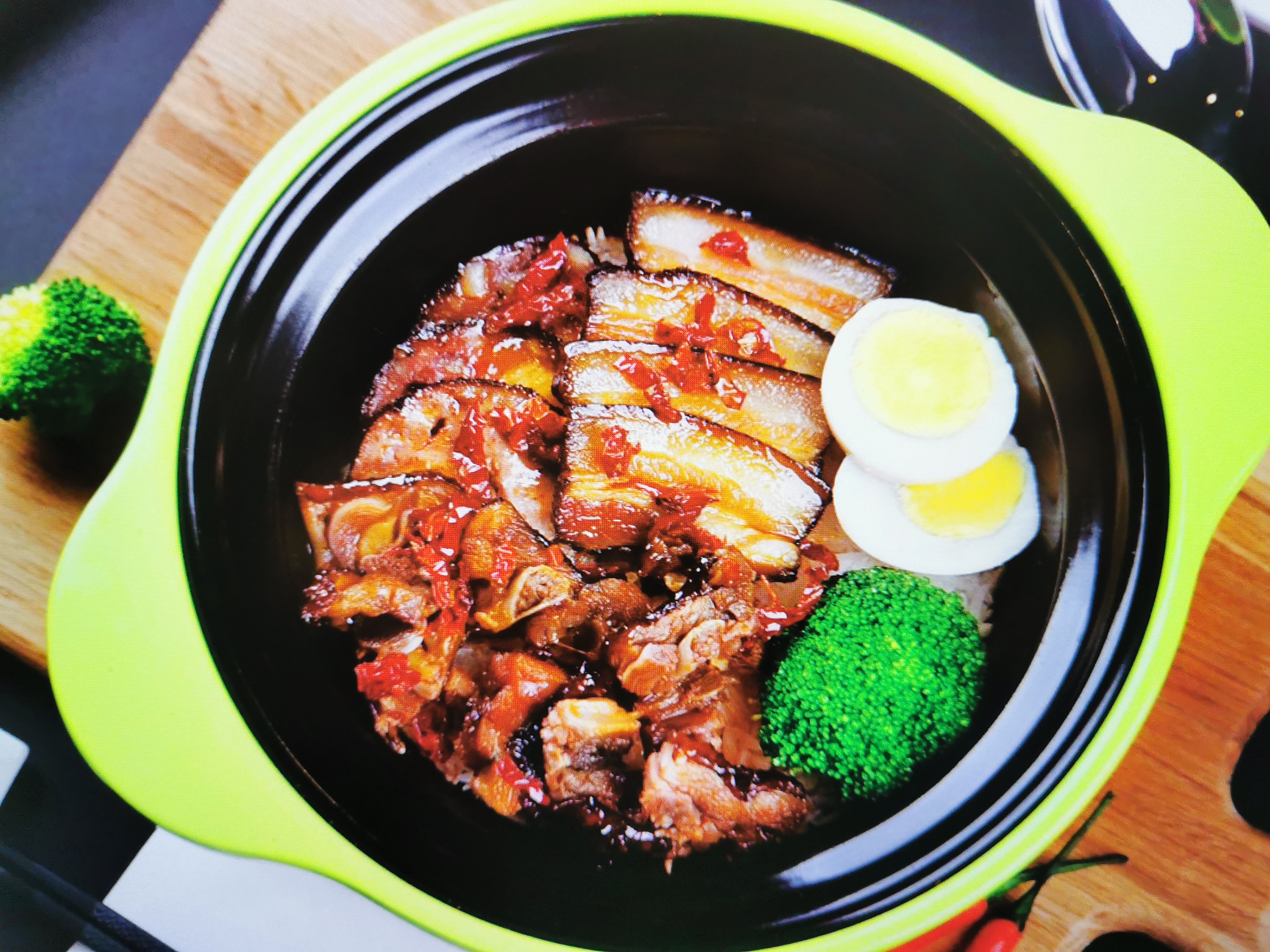 Braised Meat with Eggs | ["meat","eggs","broccoli","spices"] | ["meat:300g","eggs:100g","broccoli:50g"] | |