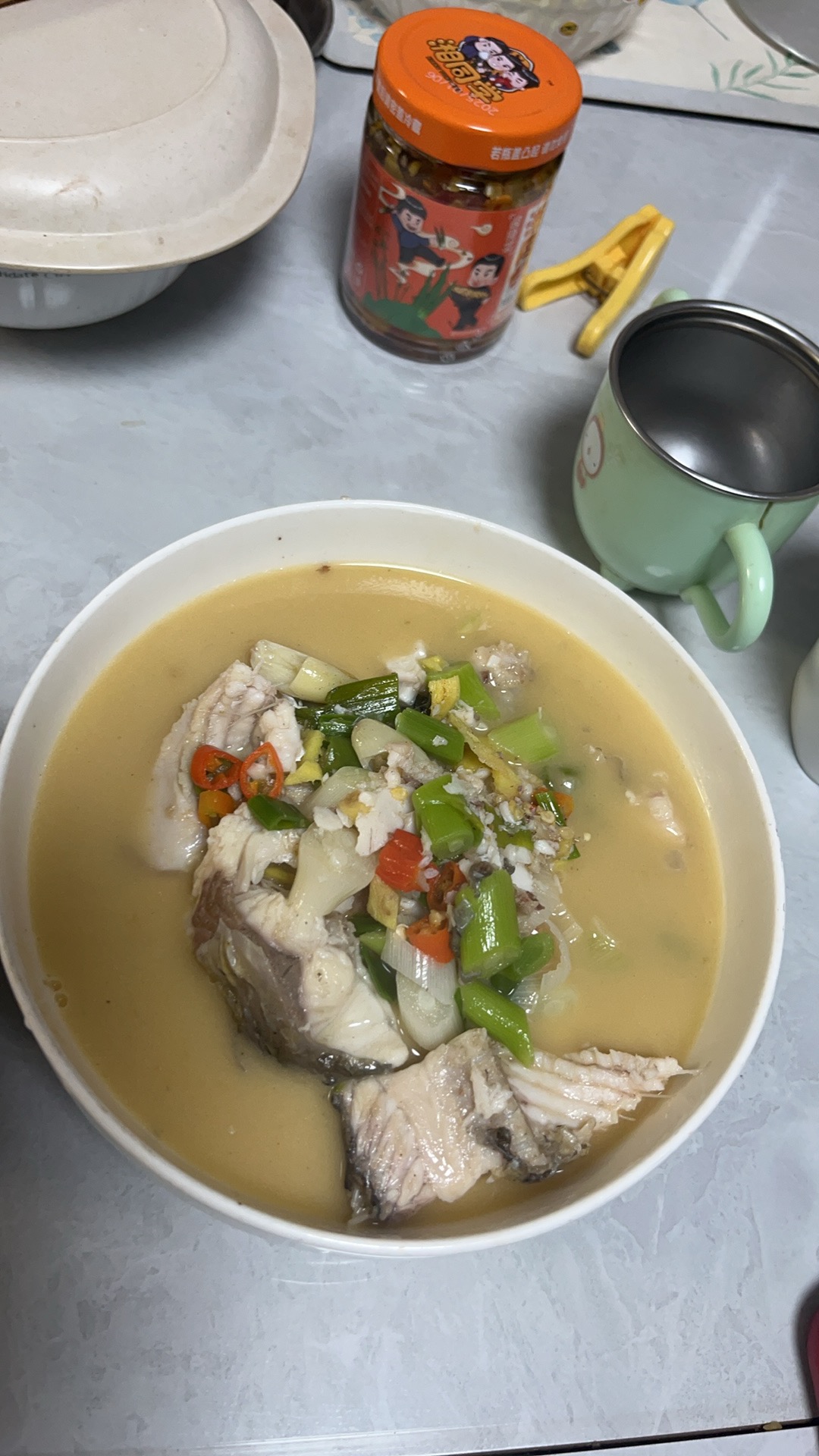 Fish Soup | ["fish","green onions","chili peppers","vegetables"] | ["fish:200g","vegetables:150g"] | |