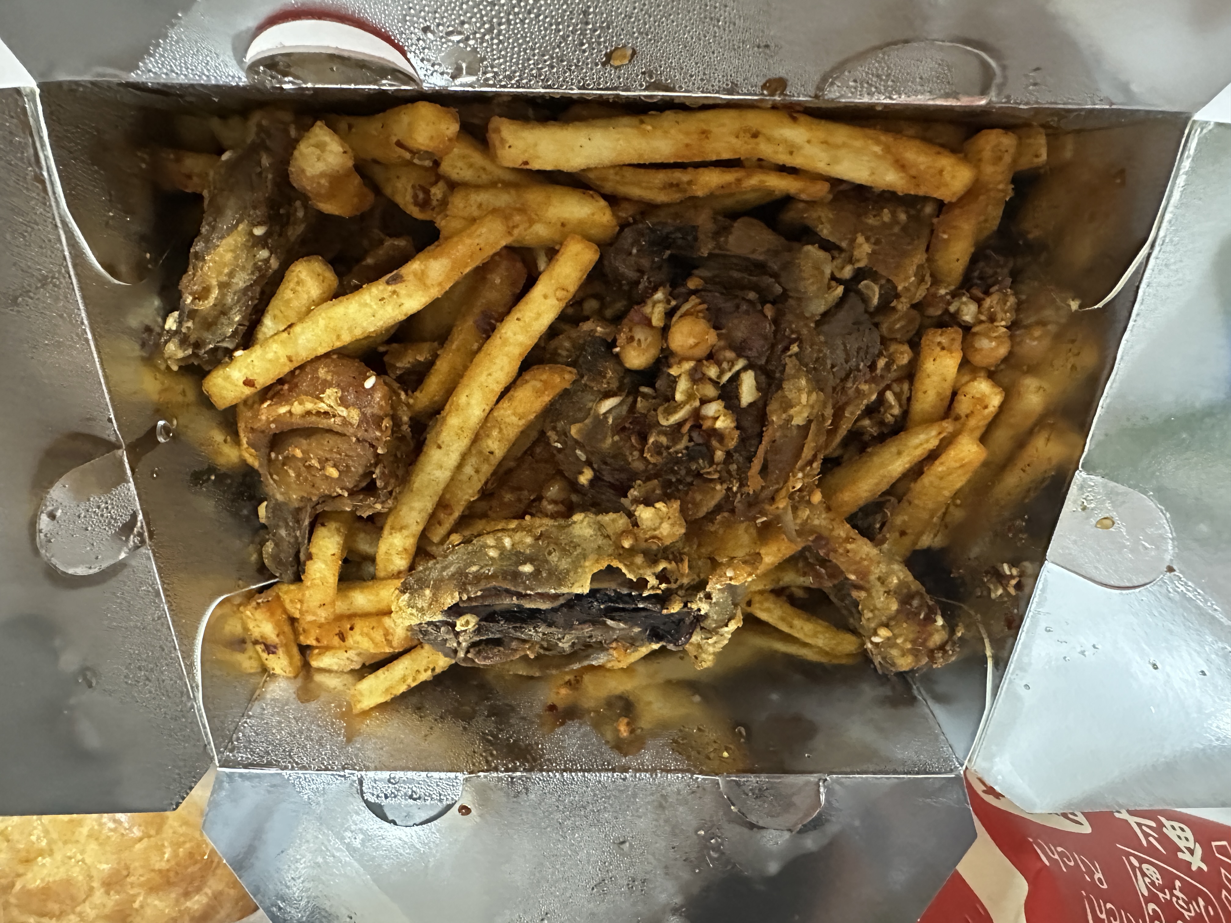 Fried Chicken and Fries | ["fries","fried chicken","seasoning"] | ["fries:200g","fried chicken:150g"] | |