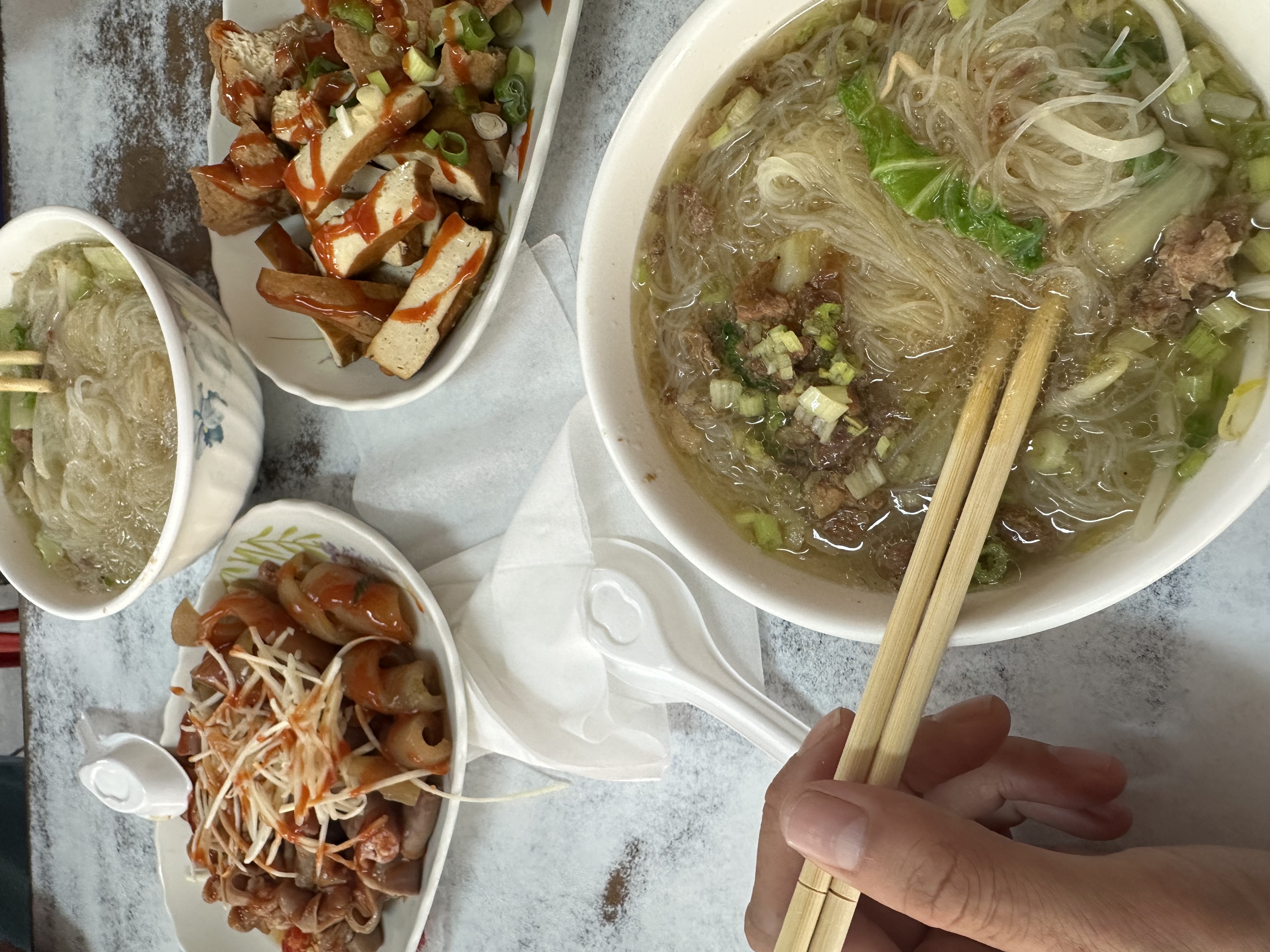 Noodle Soup with Sides | ["noodles","beef","tofu","vegetables","sauce"] | ["noodles:300g","meat:150g","vegetables:100g"] | |