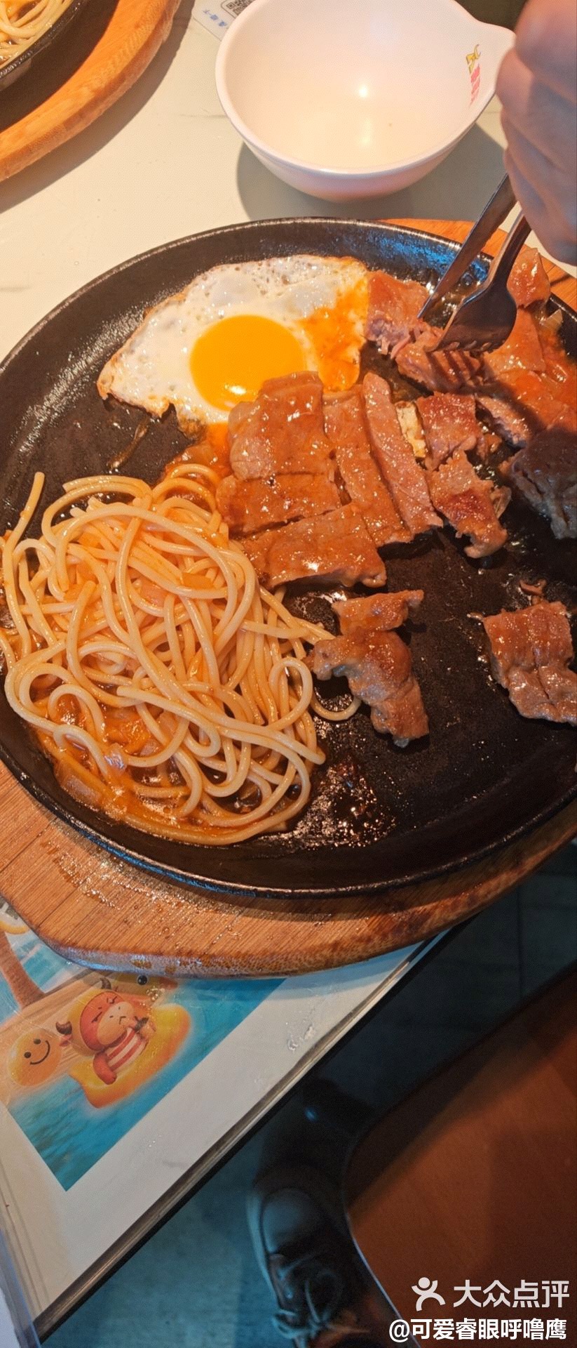 Steak with Egg and Pasta | ["steak","egg","pasta","sauce"] | ["steak:200g","egg:50g","pasta:150g"] | |
