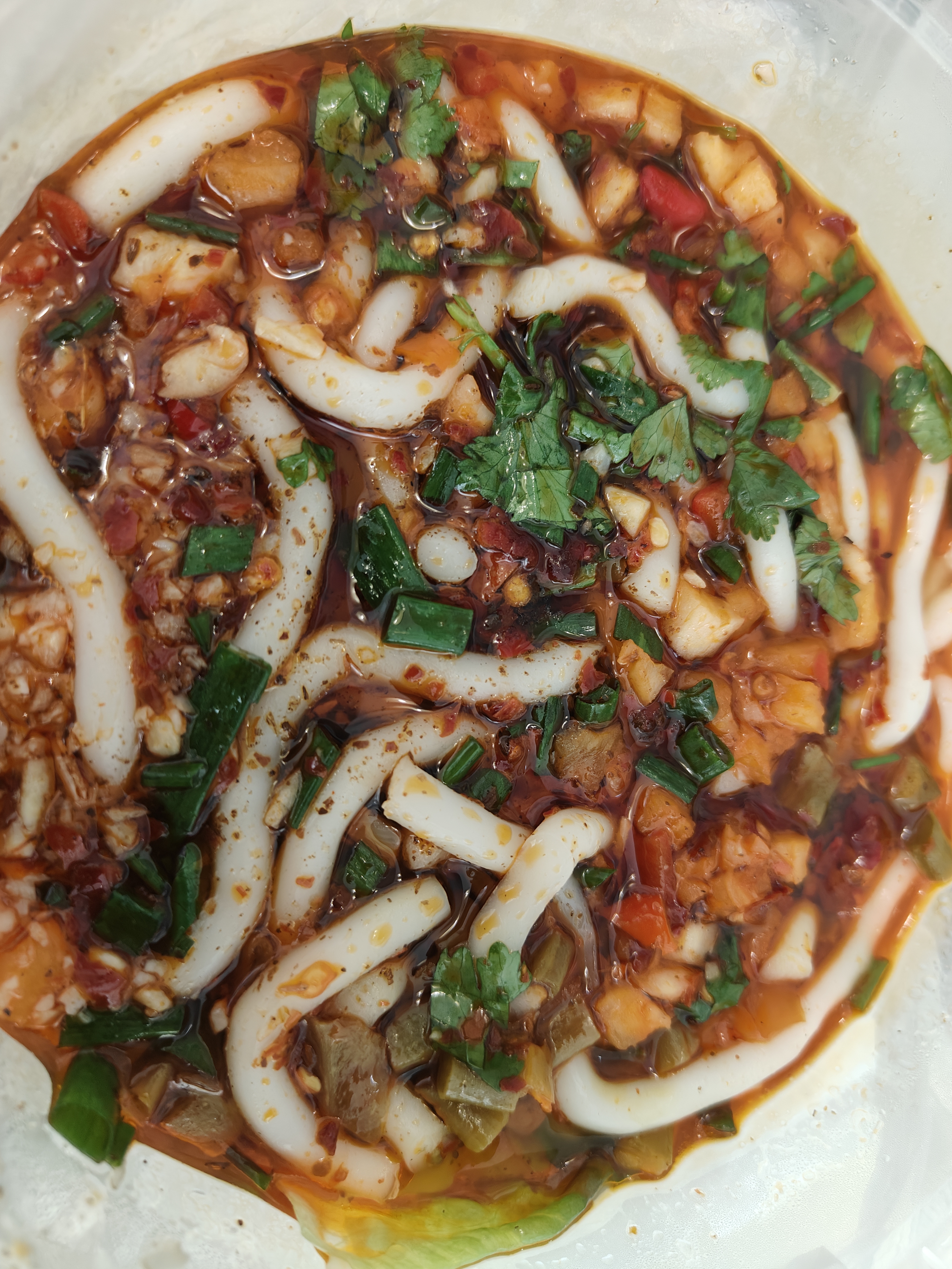 Spicy Noodle Soup | ["noodles","cilantro","chili oil","vegetables"] | ["noodles:200g","vegetables:150g"] | |