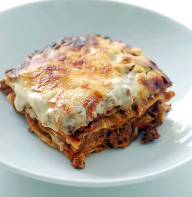 Lasagna | ["pasta","ground meat","cheese","tomato sauce"] | ["pasta:150g","meat:100g","cheese:100g"] | |