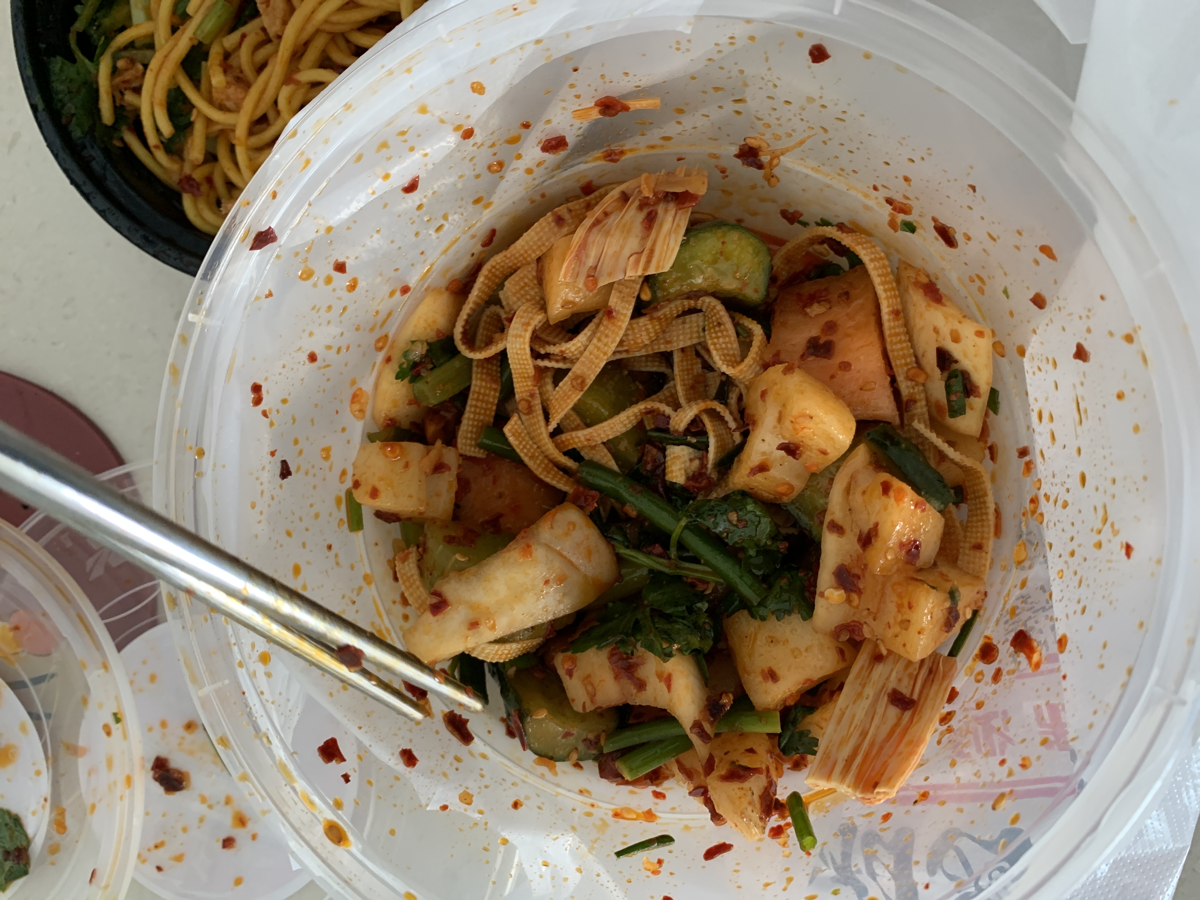 Spicy Noodle Salad | ["noodles","cucumbers","carrots","spicy sauce"] | ["noodles:200g","vegetables:150g"] | |