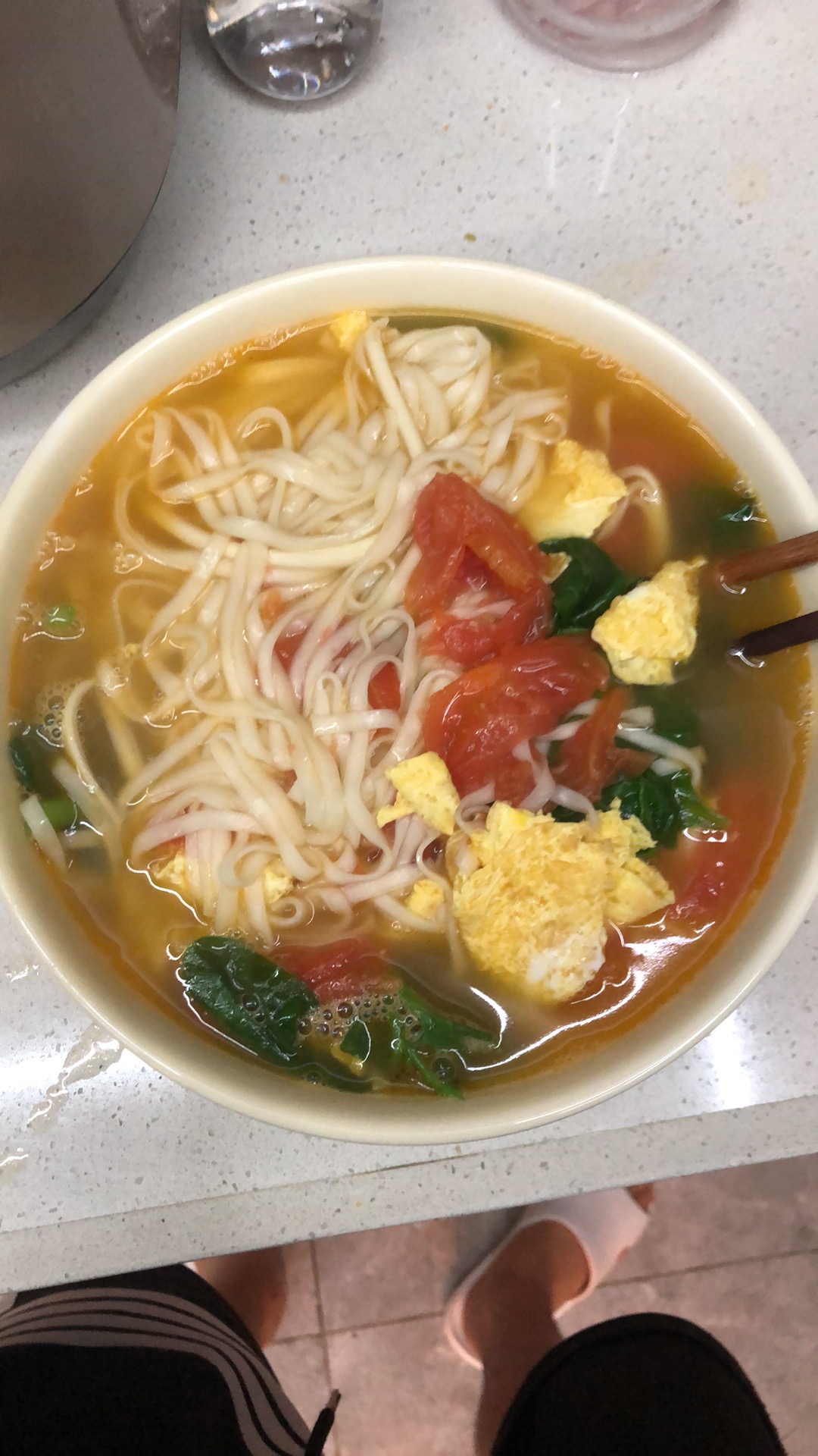 Noodle Soup | ["noodles","eggs","tomatoes","spinach"] | ["noodles:200g","eggs:100g","tomatoes:50g","spinach:50g"] | |