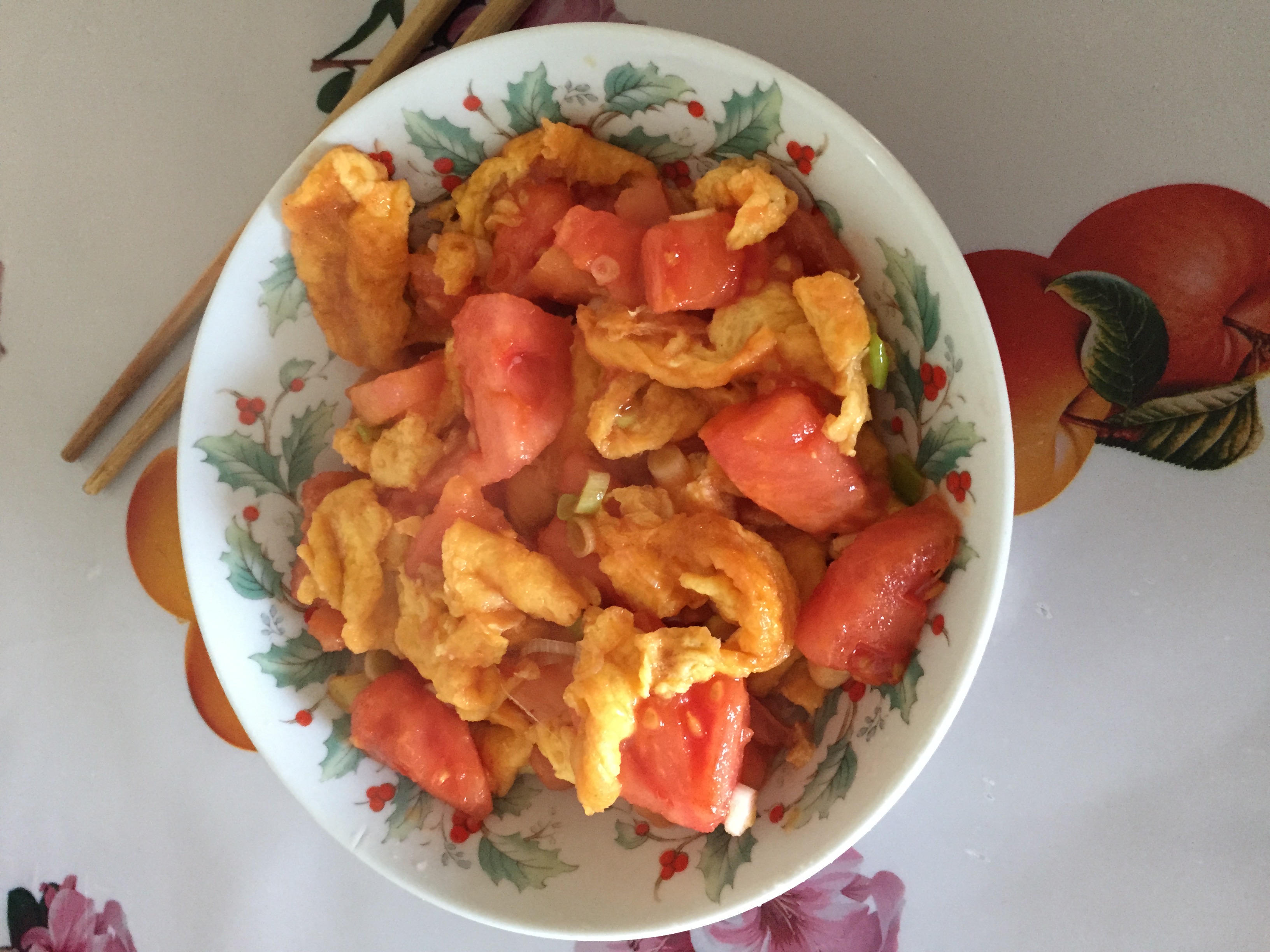 Tomato and Egg Stir-fry | ["eggs","tomatoes","green onions"] | ["eggs:200g","tomatoes:150g"] | |