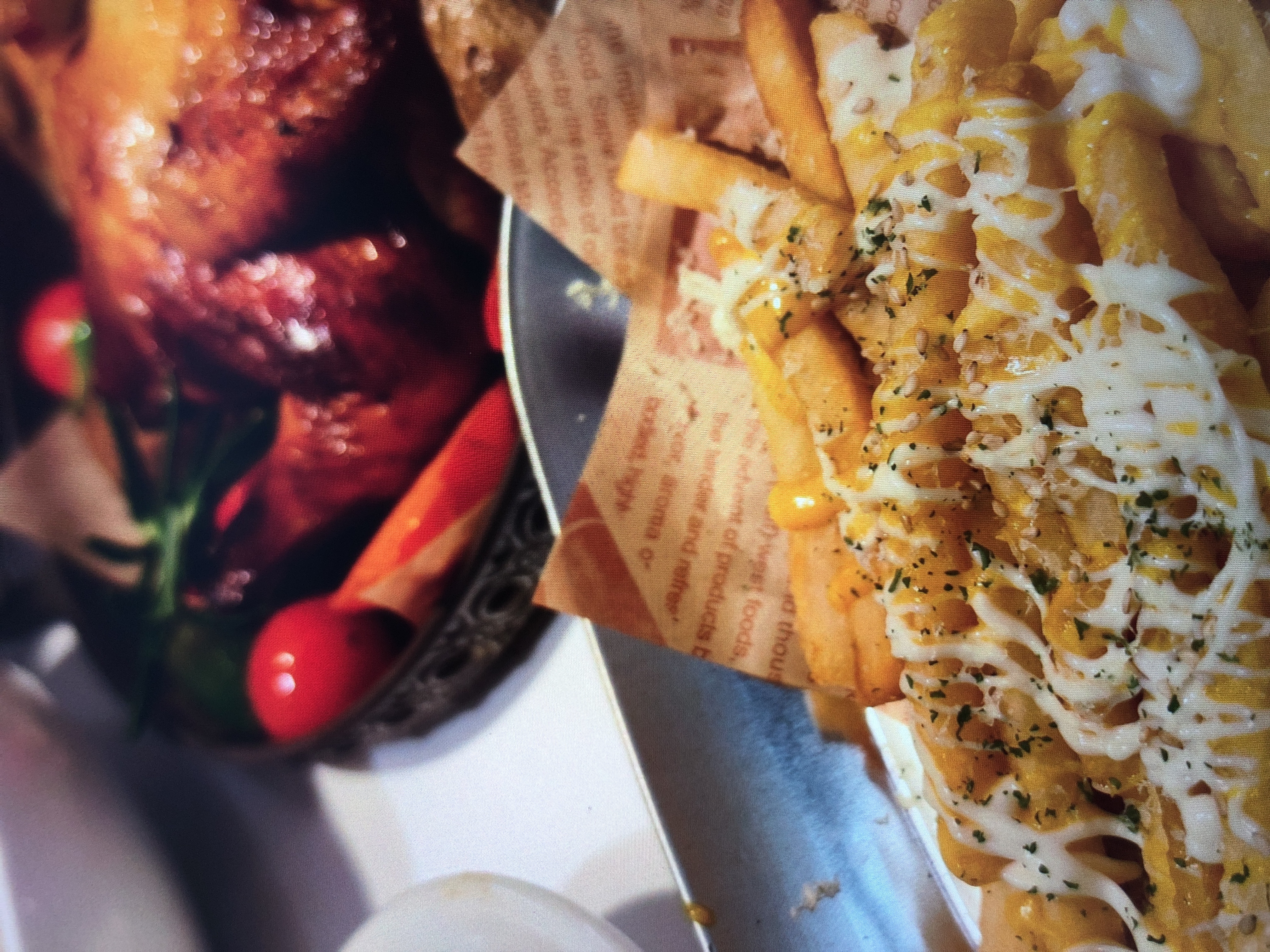 Loaded Fries with Roasted Chicken | ["fries","cheese","mayonnaise","roasted chicken","seasoning"] | ["fries:300g","roasted chicken:200g"] | |