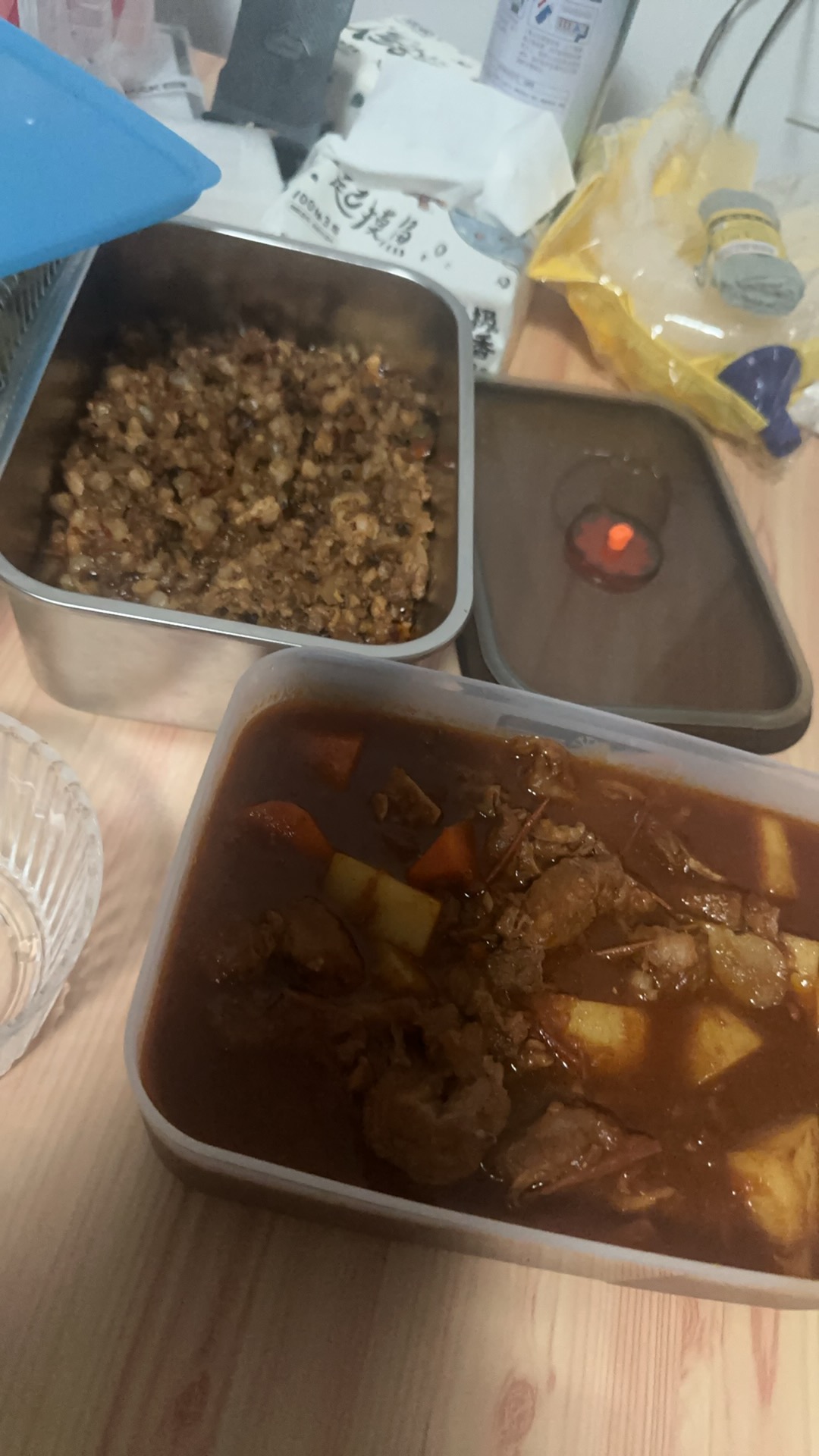 Braised Beef with Mashed Potatoes | ["beef","mashed potatoes","carrots","gravy"] | ["beef:200g","mashed potatoes:150g","carrots:50g","gravy:50g"] | |