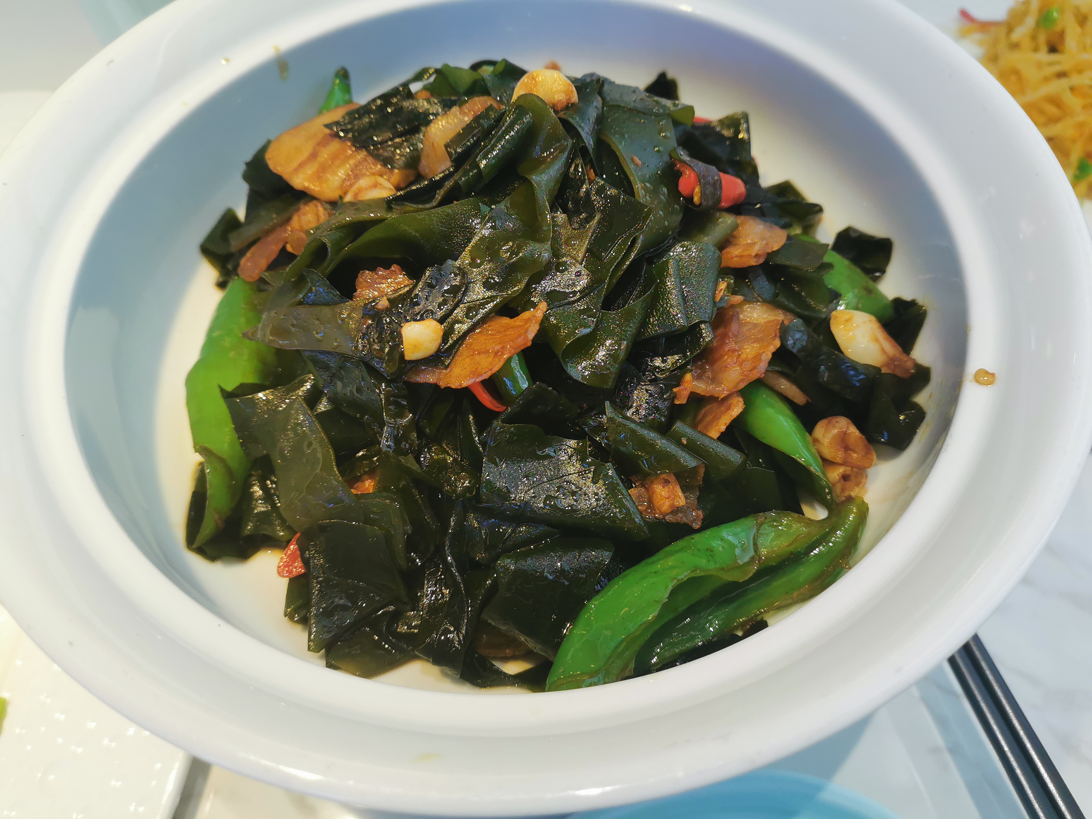 Stir-fried Seaweed and Vegetables | ["seaweed","green pepper","meat","garlic","soy sauce"] | ["seaweed:200g","green pepper:50g","meat:50g"] | |