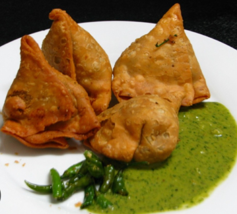 Samosas | ["potatoes","flour","spices","green chili","coriander"] | ["samosa:200g","green sauce:50g"] | |