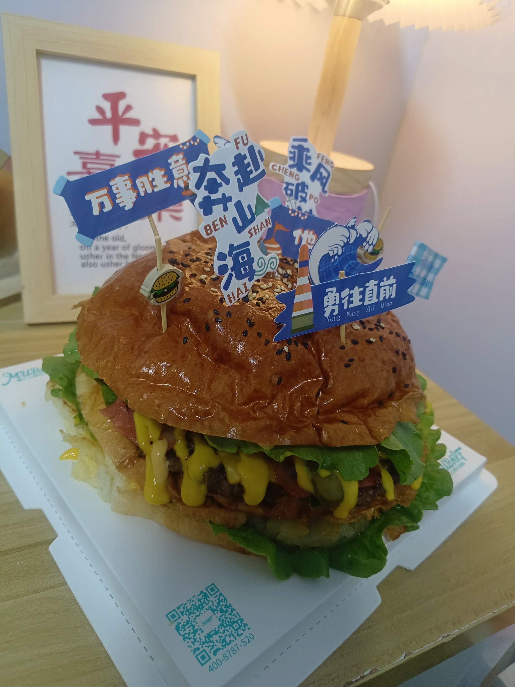 Cheeseburger | ["burger patty","cheese","lettuce","pickles","mustard","bun"] | ["burger:250g","lettuce:50g","cheese:30g","sauce:20g"] | |