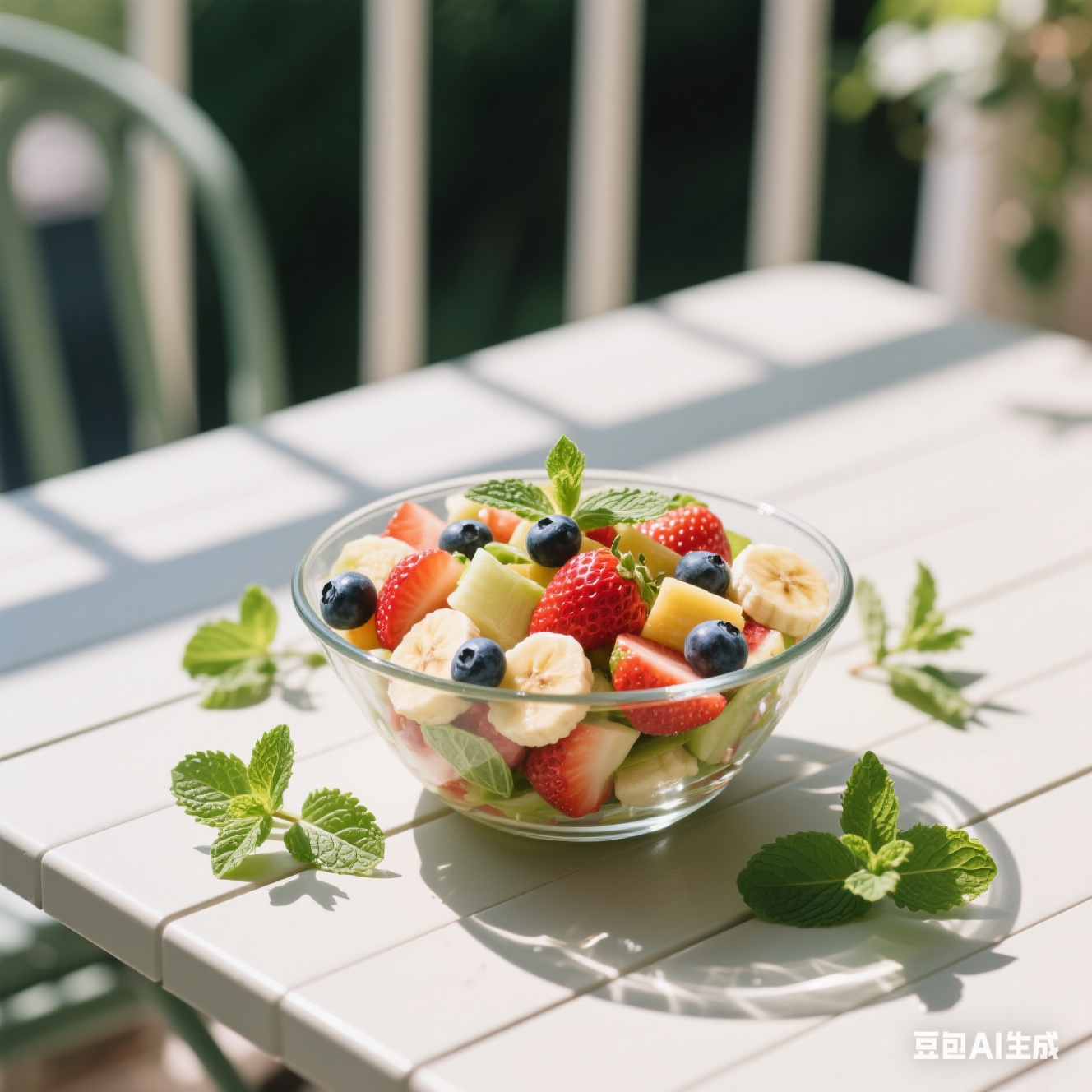 Fruit Salad | ["strawberries","blueberries","banana","melon","mint"] | ["strawberries:100g","blueberries:50g","banana:100g","melon:100g"] | |