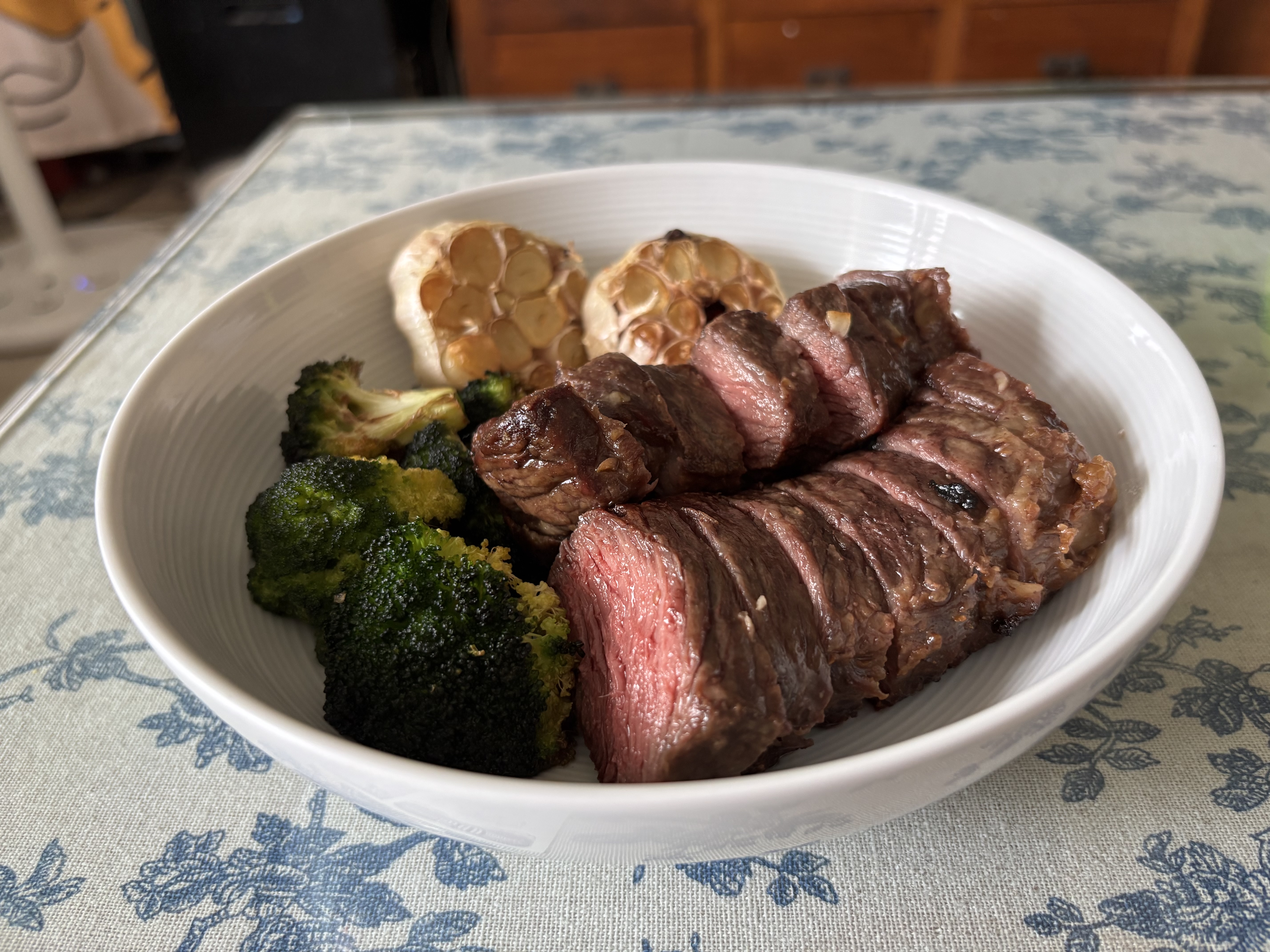 Steak with Broccoli and Garlic | ["steak","broccoli","garlic"] | ["steak:250g","broccoli:150g","garlic:50g"] | |