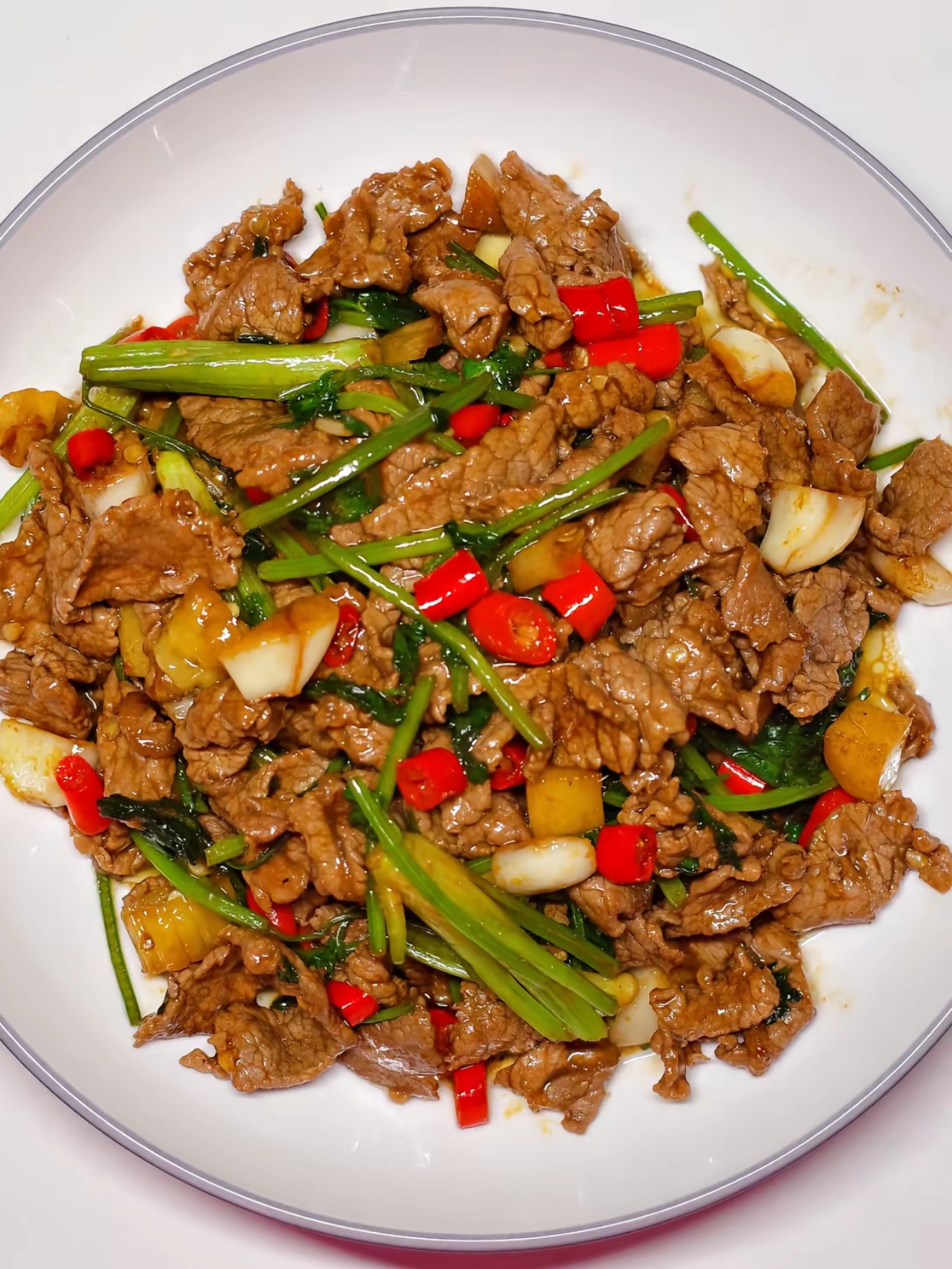 Beef Stir-Fry | ["beef","bell peppers","green onions","garlic","soy sauce"] | ["beef:200g","vegetables:150g"] | |