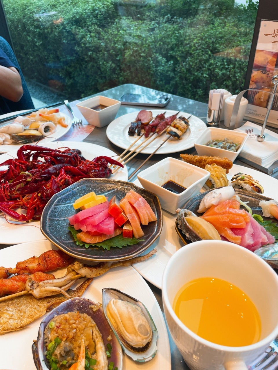 Mixed Seafood and Sushi Platter | ["lobster","sushi","salmon","tuna","grilled chicken","sauce"] | ["seafood:500g","sushi:200g","sauce:50g"] | |