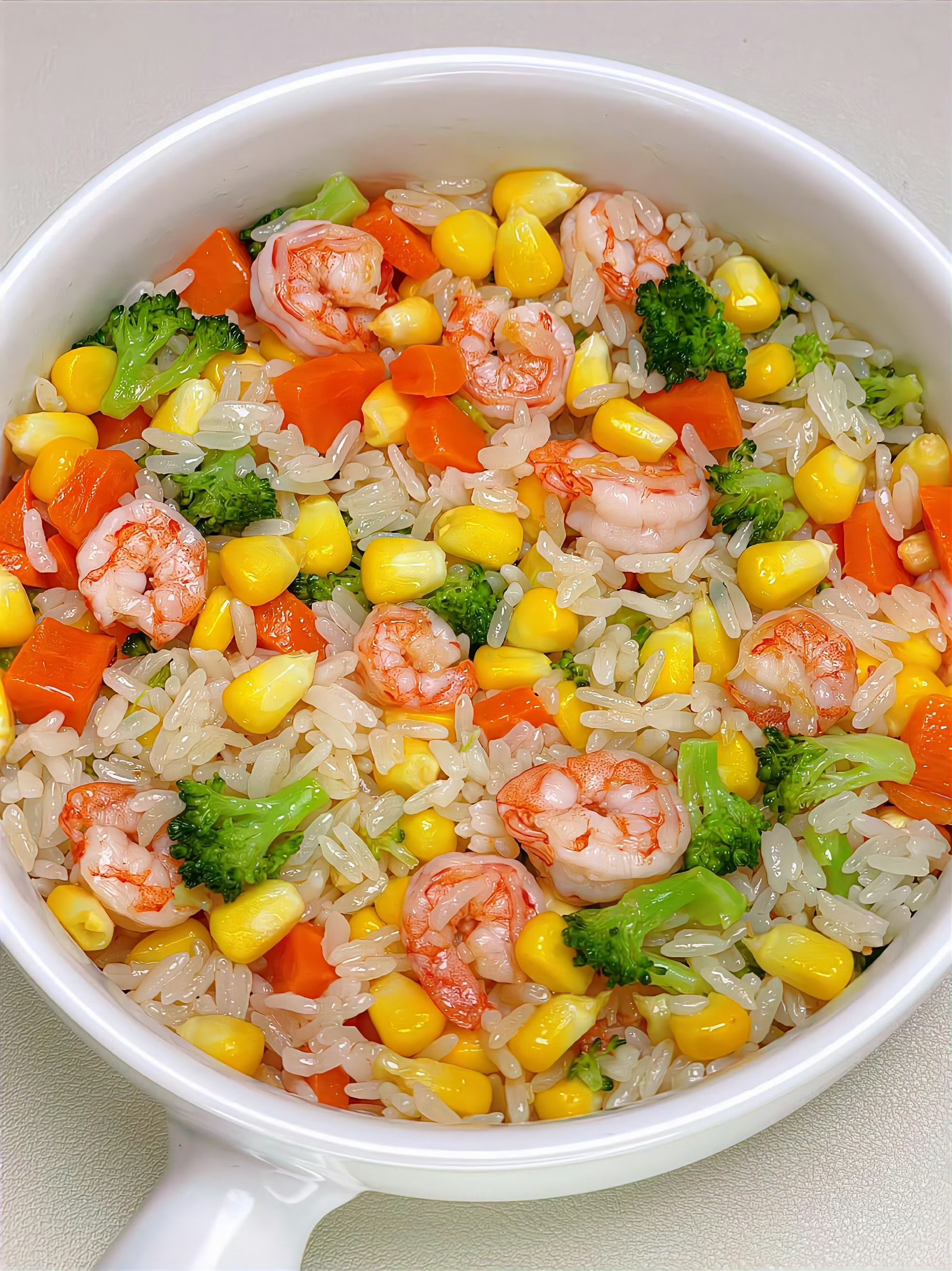 Shrimp Fried Rice | ["rice","shrimp","broccoli","corn","carrot"] | ["rice:200g","shrimp:100g","vegetables:150g"] | |
