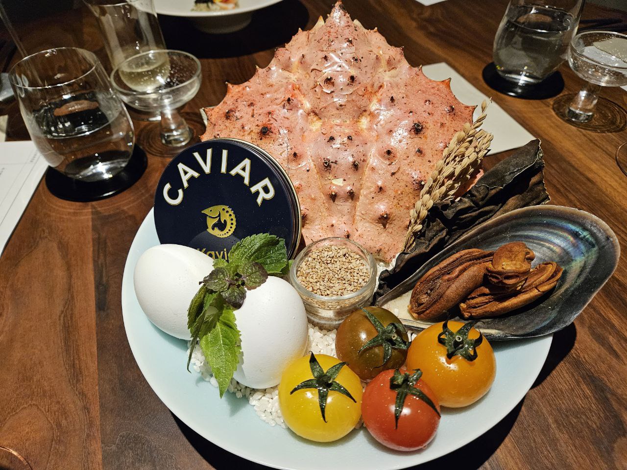 Caviar and Eggs Platter | ["caviar","eggs","tomatoes","mint","sesame seeds"] | ["caviar:50g","eggs:200g","tomatoes:150g"] | |
