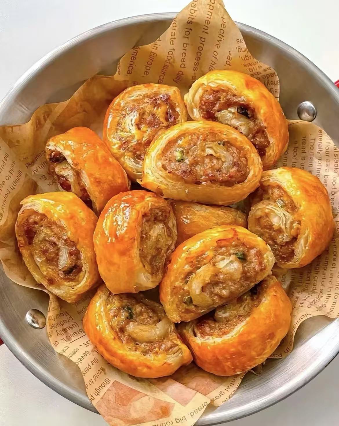 Savory Rolls | ["puff pastry","ground meat","vegetables","spices"] | ["roll:100g"] | |