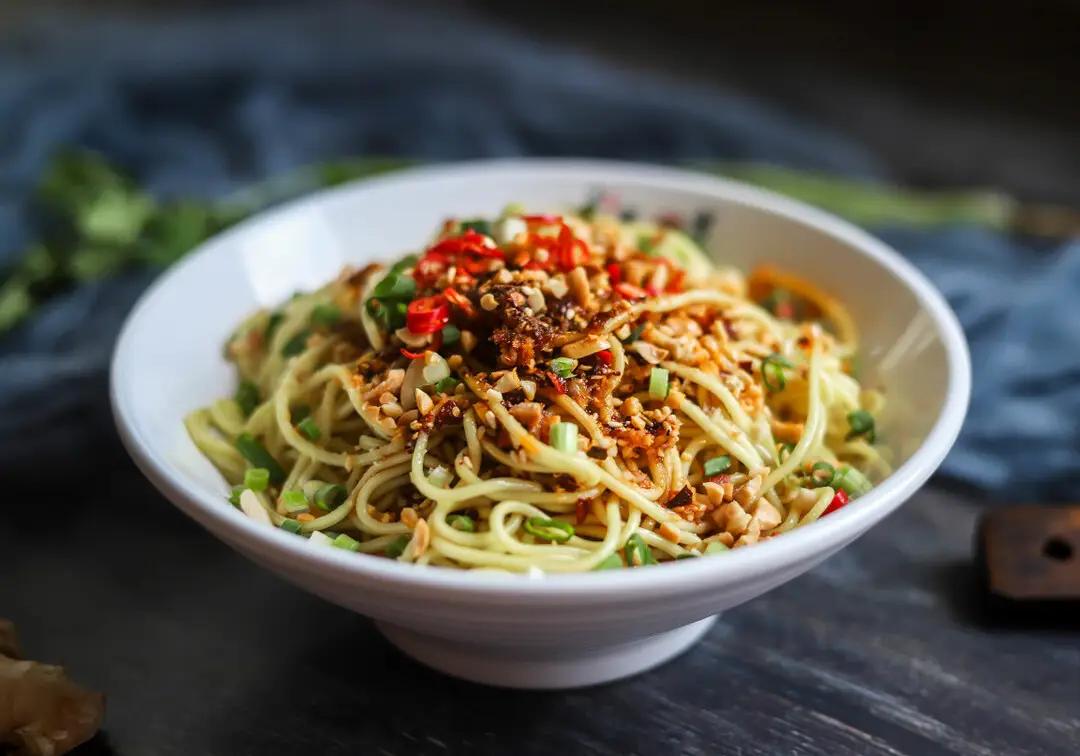 Noodle Salad | ["noodles","peanuts","green onions","chili peppers"] | ["noodles:300g","peanuts:50g","vegetables:50g"] | |