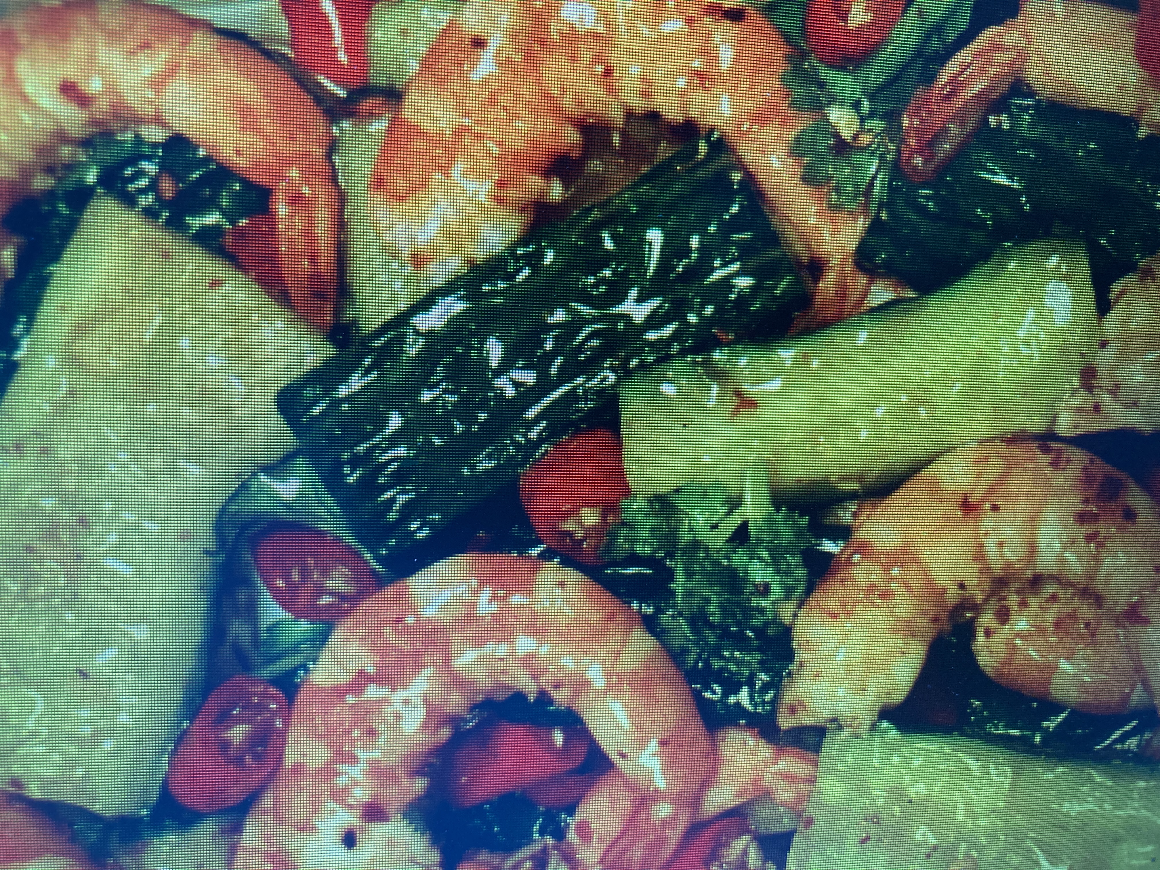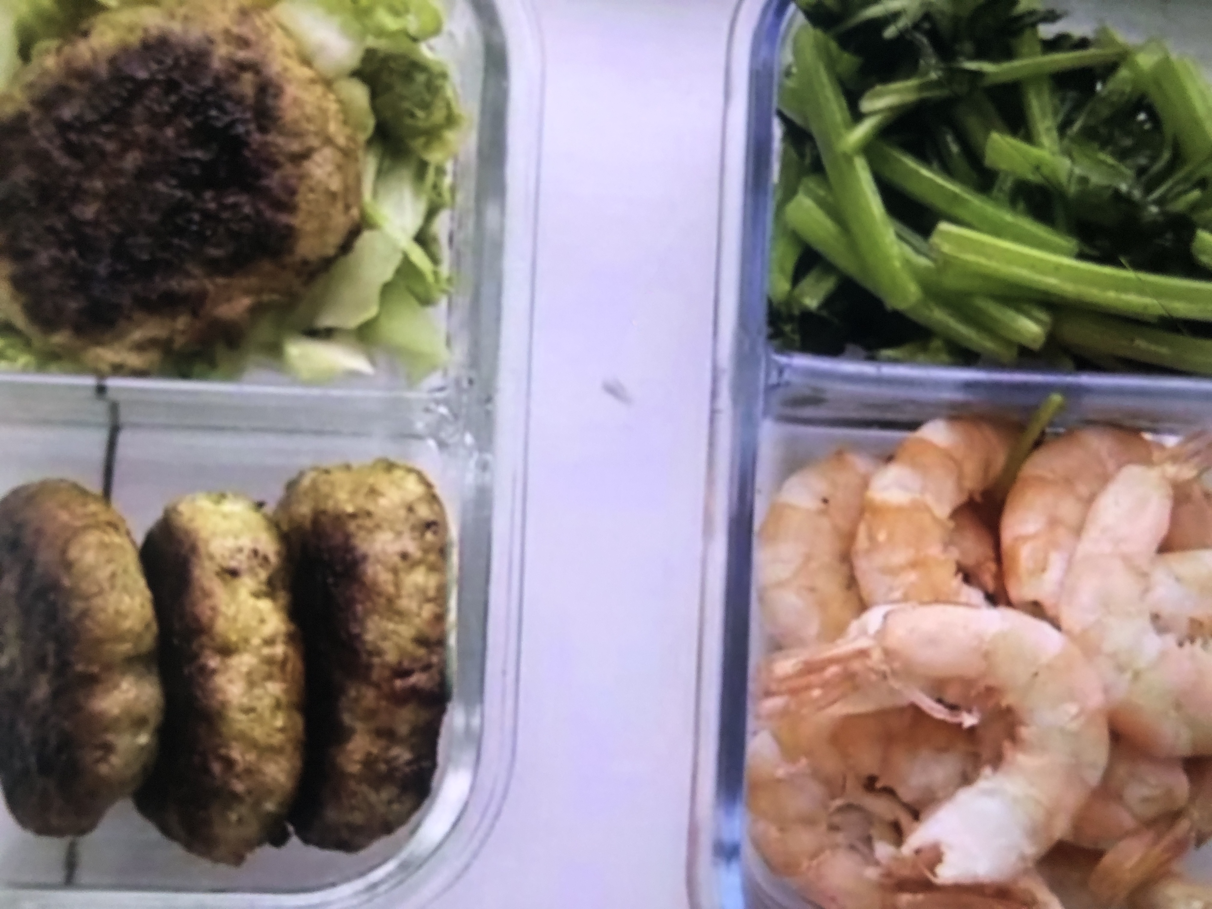 Shrimp and Patties Meal | ["shrimp","patties","lettuce","green vegetables"] | ["shrimp:200g","patties:200g","vegetables:100g"] | |