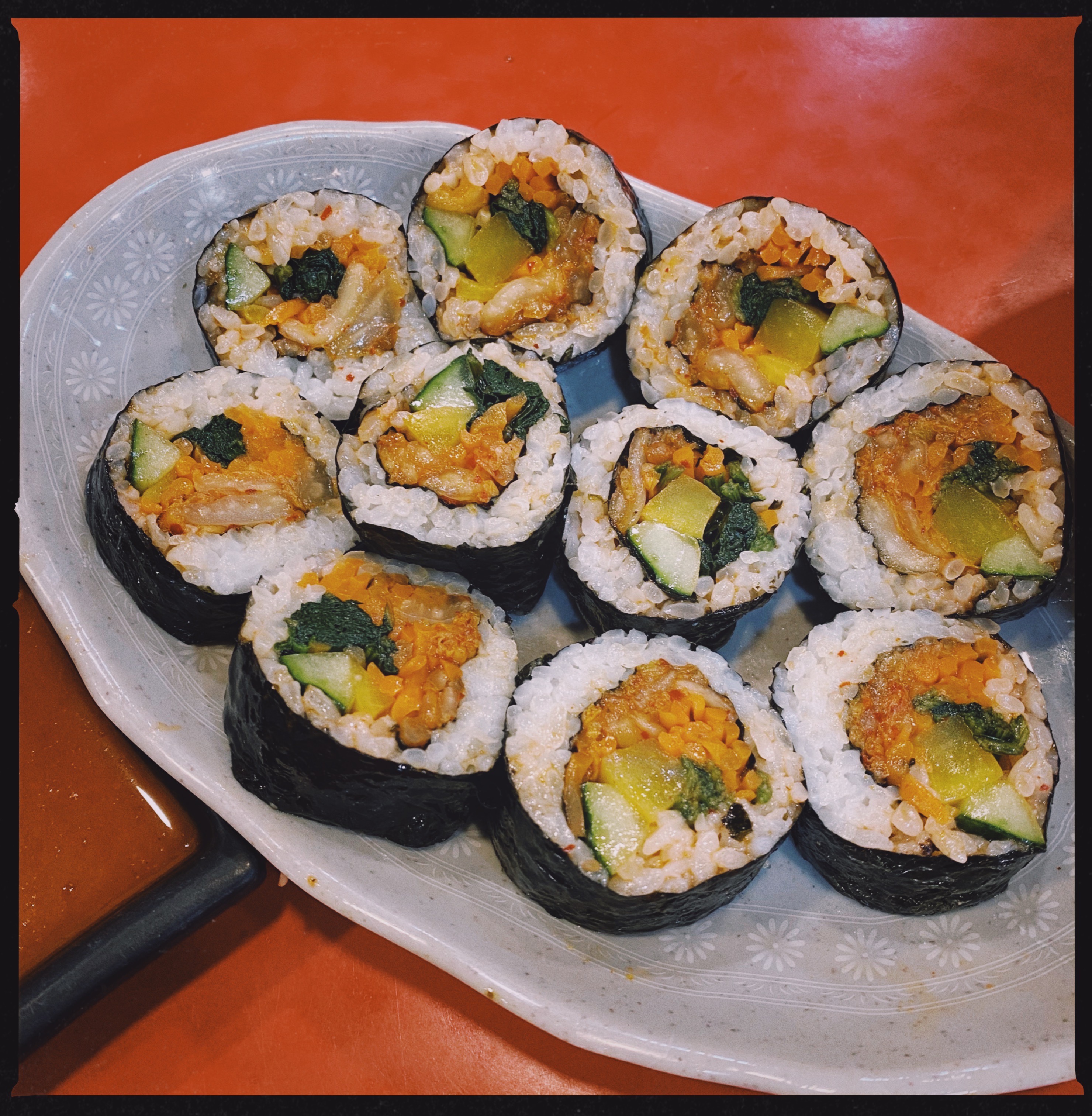 Sushi Rolls | ["rice","nori","cucumber","carrots","spinach"] | ["rice:200g","vegetables:100g"] | |