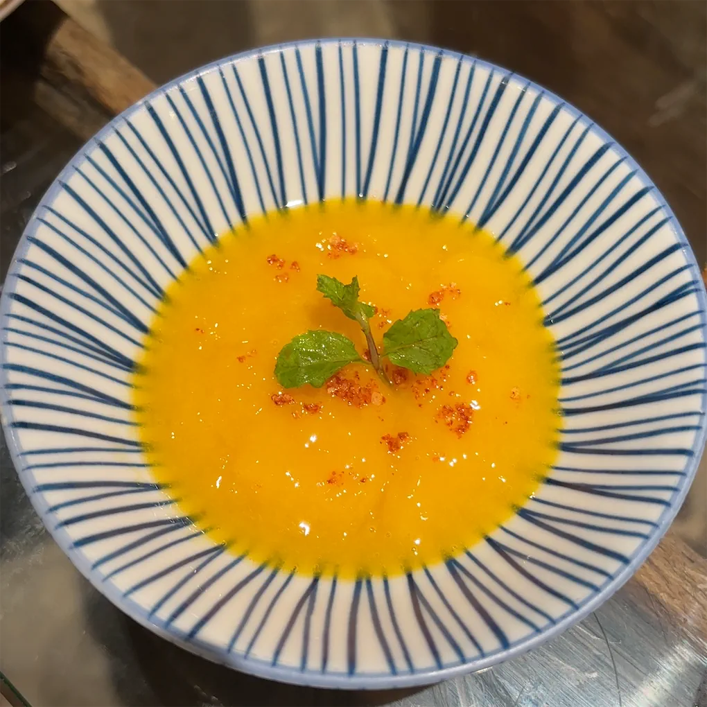 Mango Soup | ["mango","water","mint","spices"] | ["mango:300g","water:50g"] | |