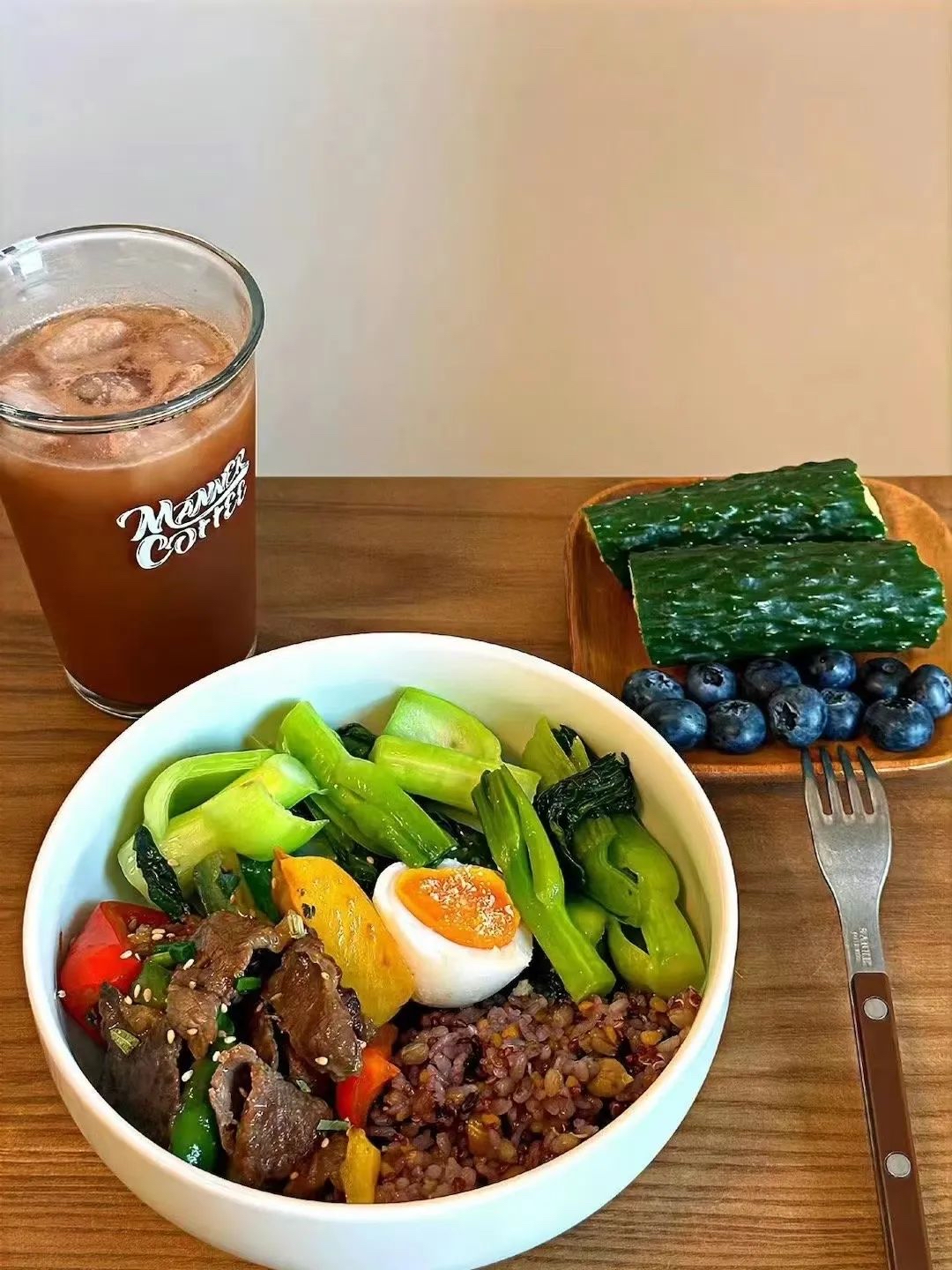 Mixed Grain Bowl | ["beef","brown rice","vegetables","egg"] | ["beef:150g","brown rice:200g","vegetables:150g","egg:50g"] | |