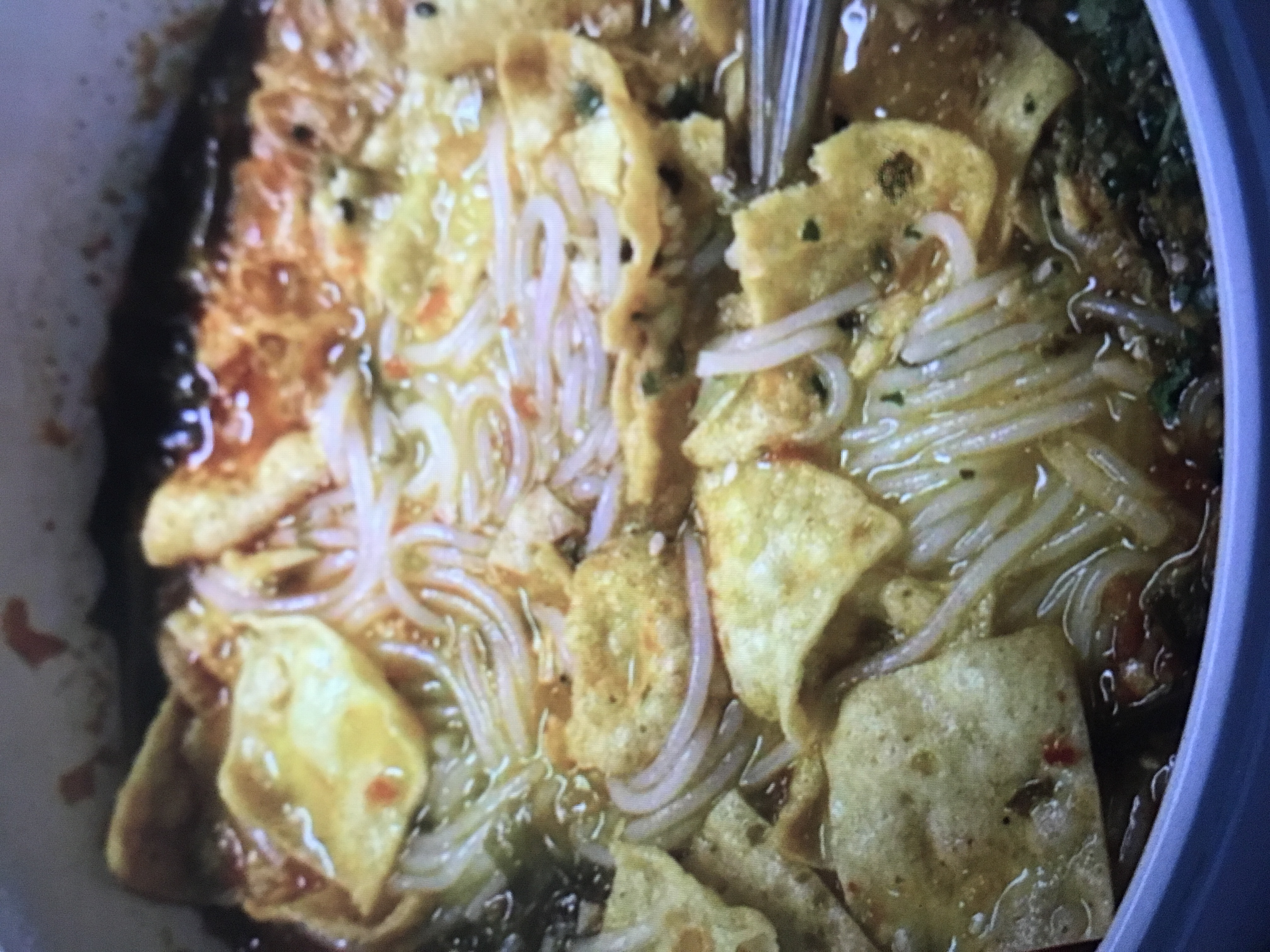 Noodle Soup | ["noodles","fried chips","broth","vegetables"] | ["noodles:200g","fried chips:50g","broth:300ml"] | |