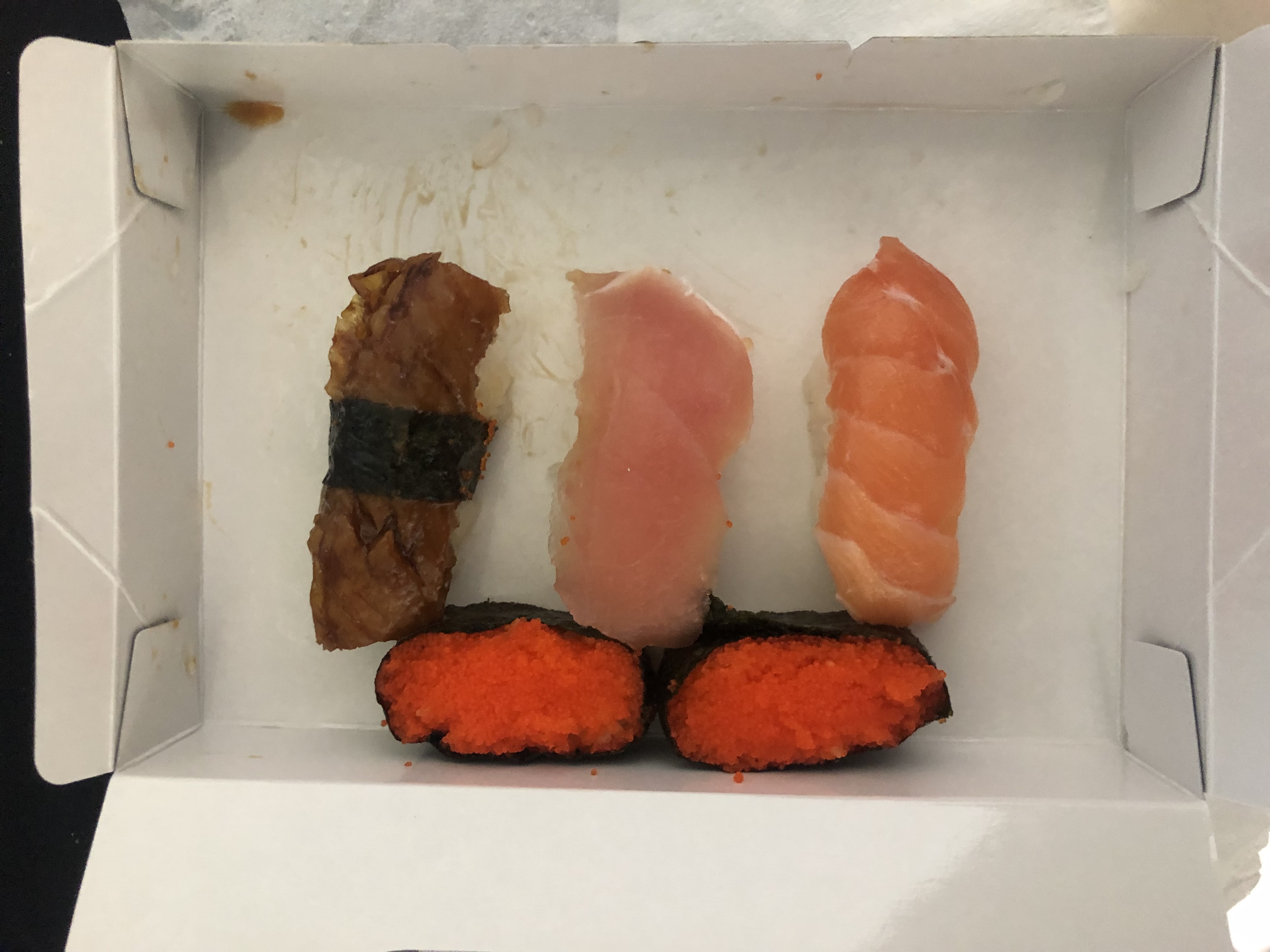 Sushi | ["rice","salmon","tuna","seaweed","fish roe"] | ["sushi:200g"] | |