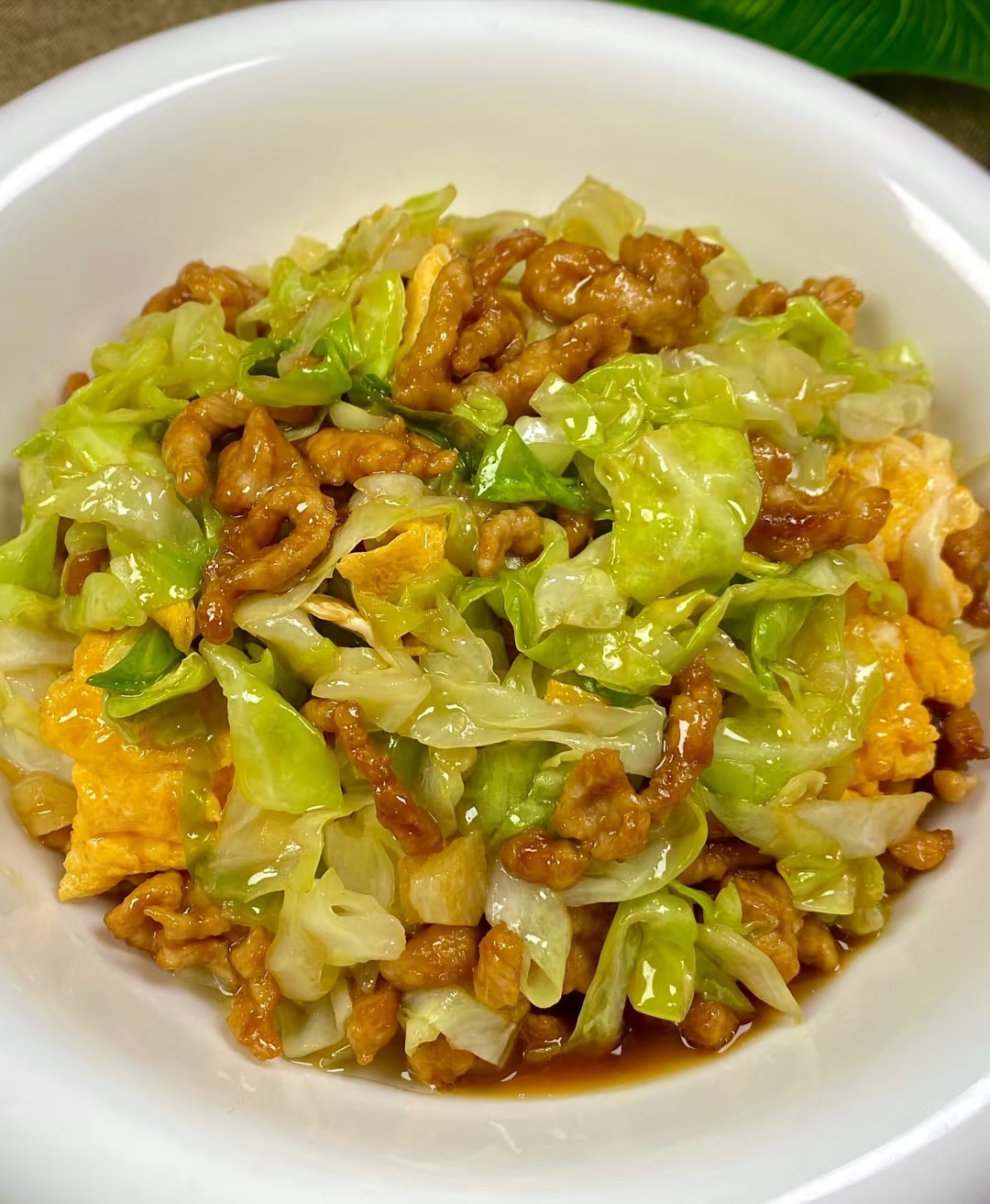 Cabbage Stir-Fry with Meat | ["cabbage","meat","soy sauce","egg"] | ["cabbage:200g","meat:150g"] | |