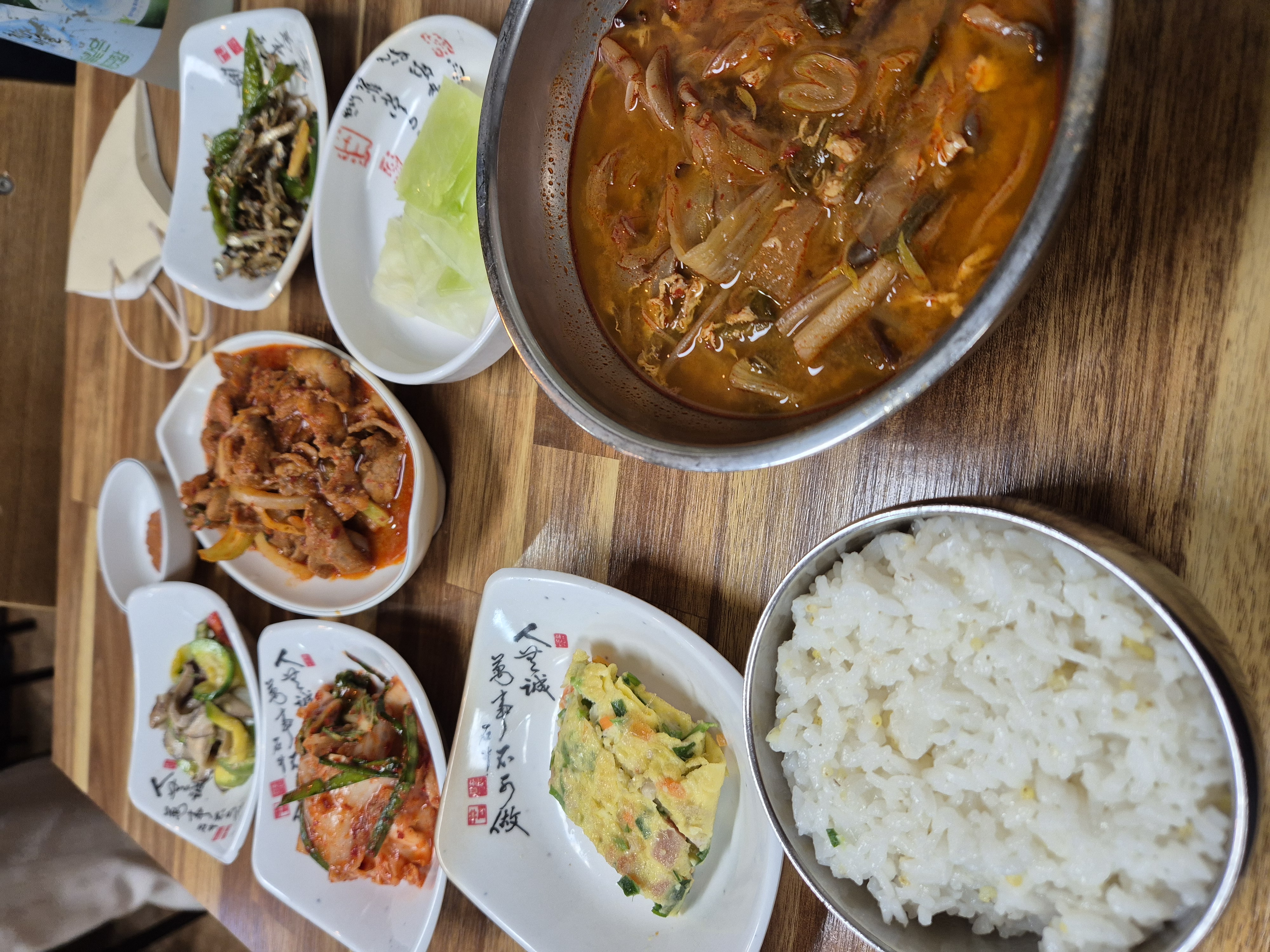 Korean BBQ with rice | ["rice","pork","kimchi","vegetables","egg"] | ["rice:200g","main_dish:150g","side_dishes:100g"] | |
