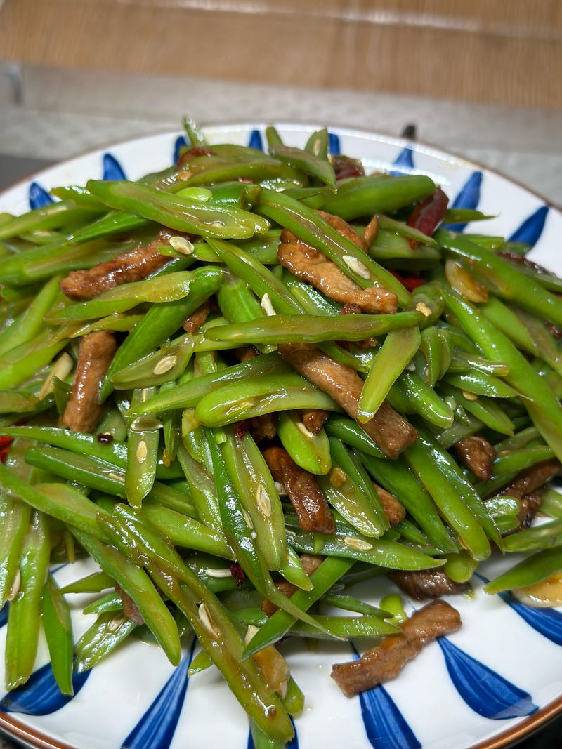 Stir-fried Green Beans with Meat | ["green beans","meat","soy sauce","garlic"] | ["green beans:200g","meat:100g"] | |