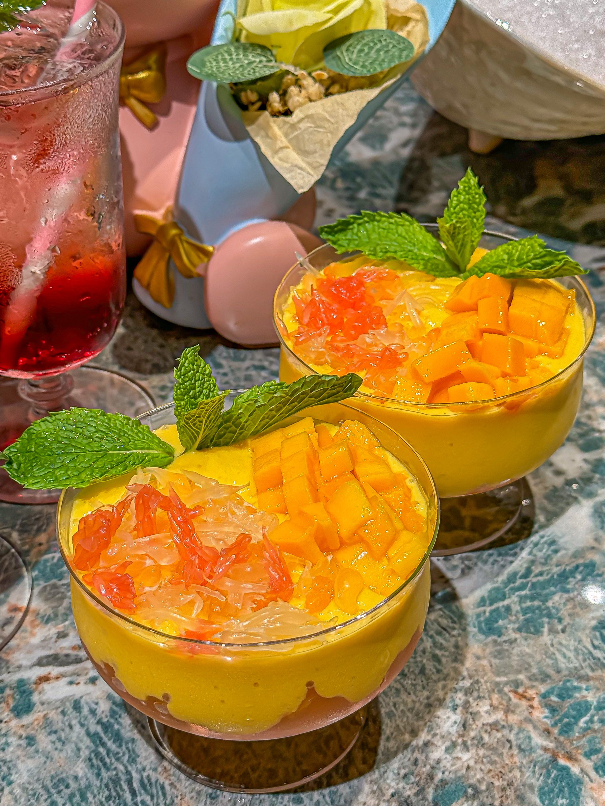 Mango Jelly Dessert | ["mango","jelly","cream","mint"] | ["mango:150g","jelly:100g"] | |