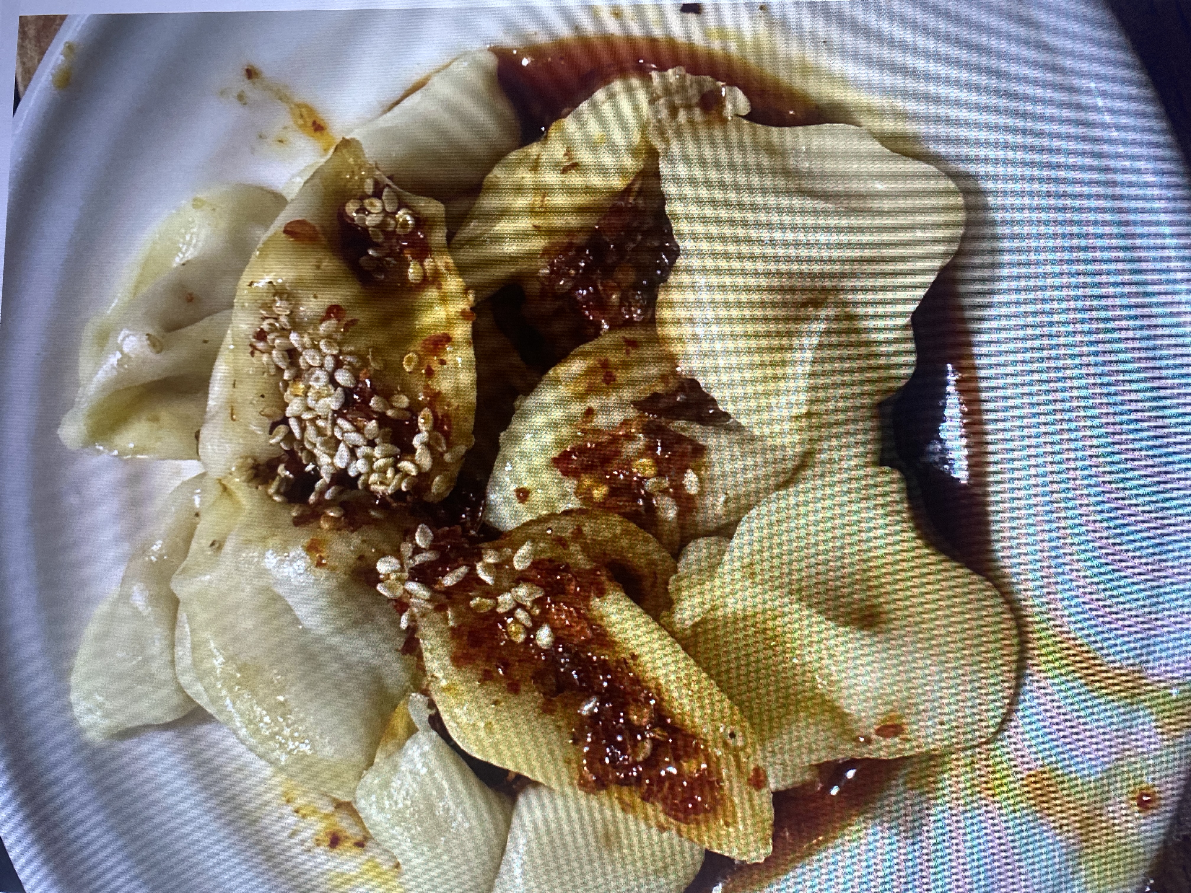 Dumplings | ["dumpling wrappers","meat filling","sesame seeds","spicy sauce"] | ["dumplings:250g","sauce:50g"] | |