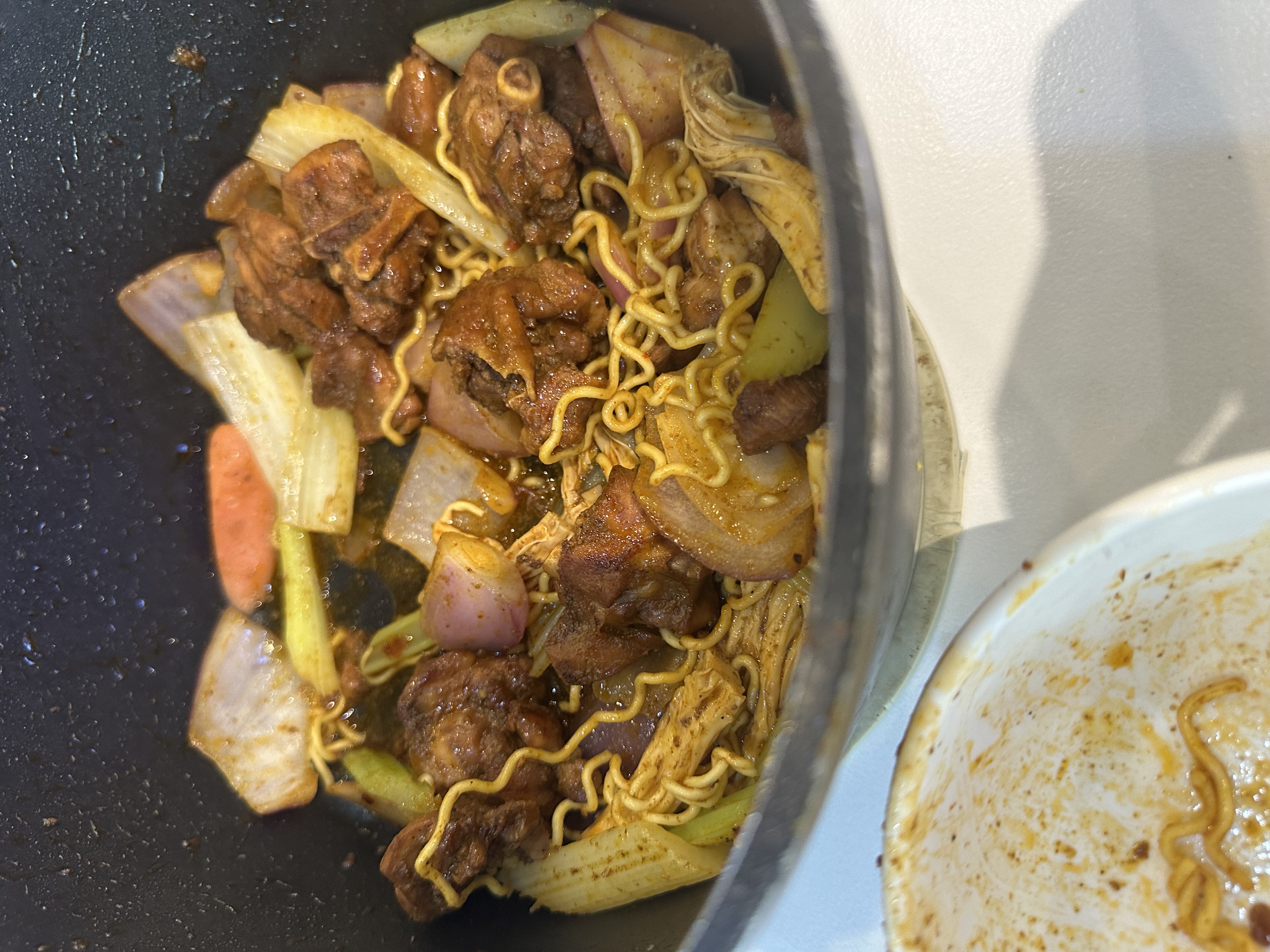 Stir-fried Noodles with Meat | ["noodles","chicken","onions","carrots","celery"] | ["noodles:200g","meat:150g","vegetables:100g"] | |