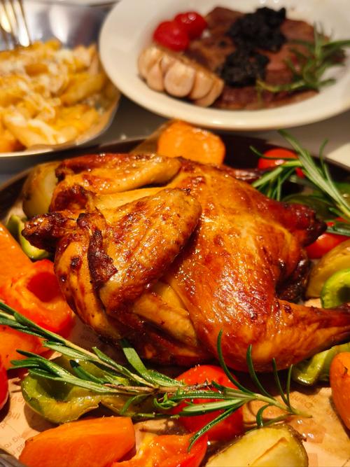 Roasted Chicken with Vegetables | ["roasted chicken","carrots","bell peppers","potatoes","rosemary"] | ["chicken:500g","vegetables:200g"] | |